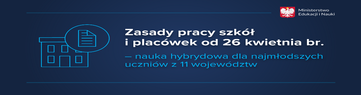 Od poniedziałku, 26 kwietnia lekcje w systemie hybrydowym w klasach I-III w szkołach podstawowych będą mieli uczniowie w 11 województwach: zachodniopomorskim, pomorskim, warmińsko-mazurskim, lubuskim, kujawsko-pomorskim, mazowieckim, podlaskim, świętokrzyskim, lubelskim, podkarpackim, małopolskim.