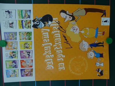 Spotkanie z Waldemarem Cichoniem było dla wszystkich niezapomnianym przeżyciem oraz dobrą zabawą. Spotkanie zorganizowała pani Anna Nowak we współpracy z Wydawnictwem Żwakowskim z pomocą wychowawczyń klas I-III. Dzięki uprzejmości autora i Wydawnictwa Żwakowskie szkolna biblioteka wzbogaciła się w serię książek o przygodach kota Cukierka. Już kilka dni po spotkaniu uczniowie, którzy zdecydowali się na zakup książki mogli cieszyć się własną książką z dedykacją autora.