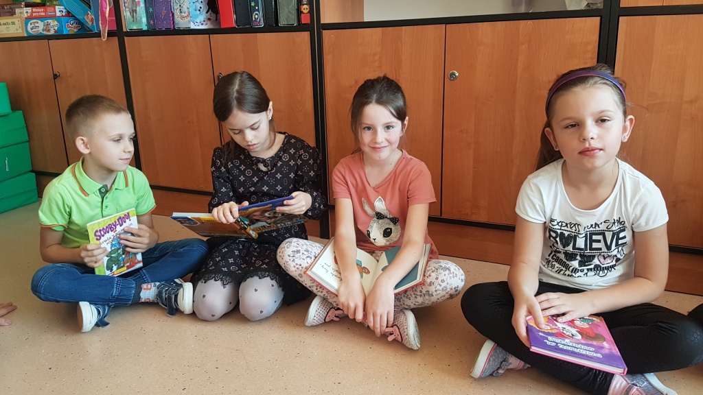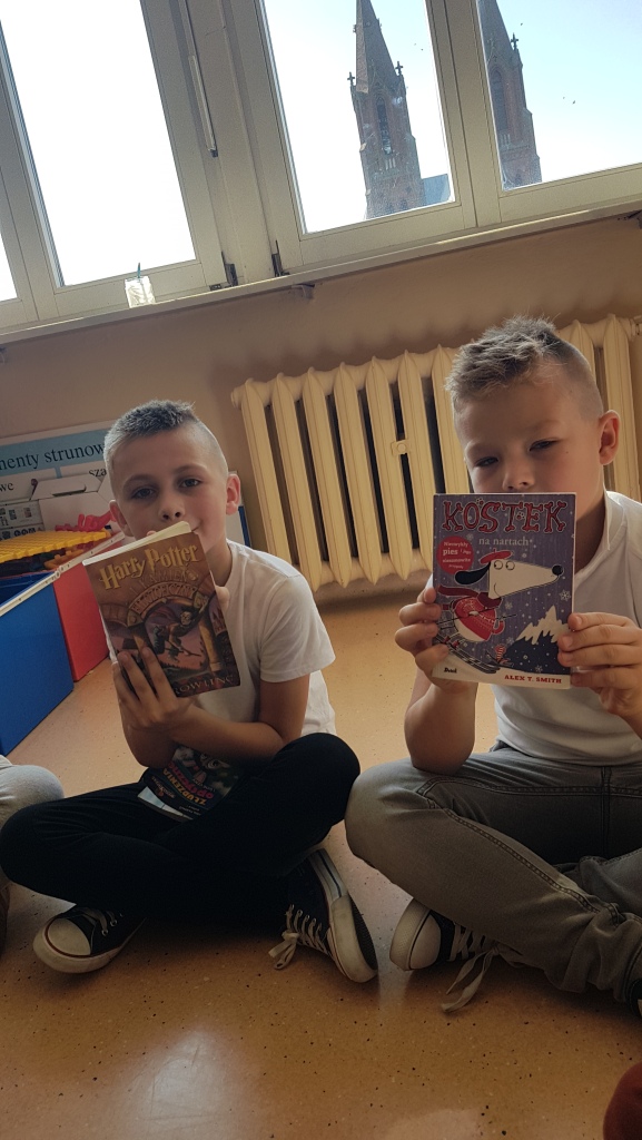 Tego dnia niemalże każdą lekcję rozpoczynaliśmy od głośnego czytania wybranej przez uczniów lub nauczyciela książki. Czytali uczniowie lub nauczyciele. Niektórych uczniów tak wciągnęła fabuła, że kontynuowali czytanie na przerwach. W czytelni biblioteki szkolnej uczniom czytała pani Ania - nasza szkolna bibliotekarka. Dzieciaki z ogromnym zainteresowaniem słuchały tych opowieści i pytały kiedy mogą przyjść, aby usłyszeć ciąg dalszy. Korzystaliśmy także z zasobów NINATEKI. Uczniowie mogli wysłuchać opowiadań czytanych przez znanych aktorów. Niektóre klasy słuchały audiobooków znajdujących się w bibliotece.