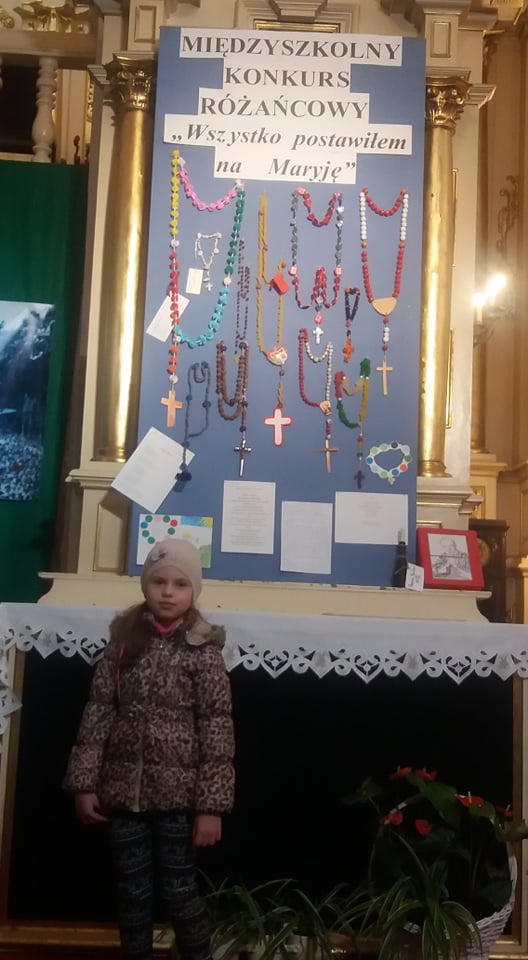 Nasza szkoła wzięła udział w kategorii dla klas I -III, która polegała na wykonaniu własnoręcznie różańca dowolną techniką. Jury szkolne wybrało pracę uczennicy z klasy II b Igi Kowalczyk, która reprezentowała naszą szkołę w konkursie.