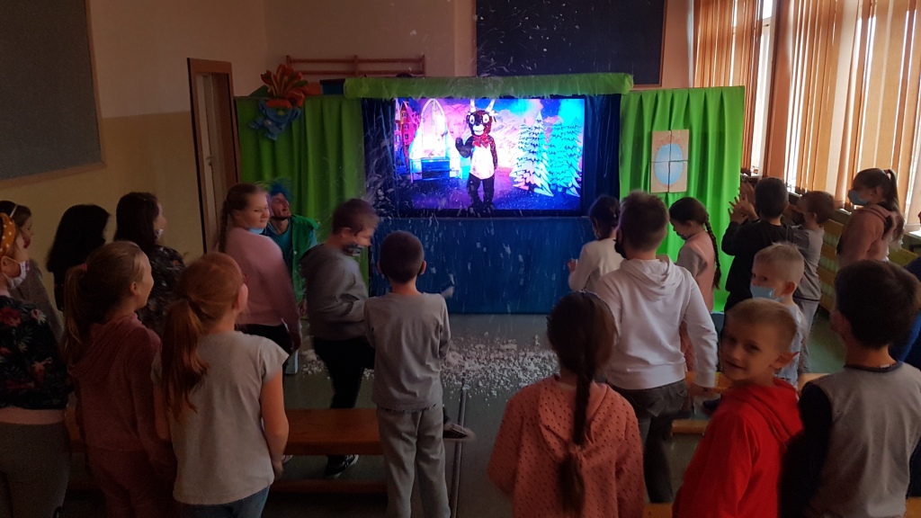 W spektaklu wzięli udział aktorzy, artyści cyrkowi oraz akrobaci. Dzieci obejrzały spektakl na 75 calowym ekranie z kurtyną i światłami ledowymi, w towarzystwie jednego aktora występującego na żywo. Dodatkową atrakcją, która przypadła młodym widzom do gustu, był pokaz baniek mydlanych oraz sztuczny śnieg.