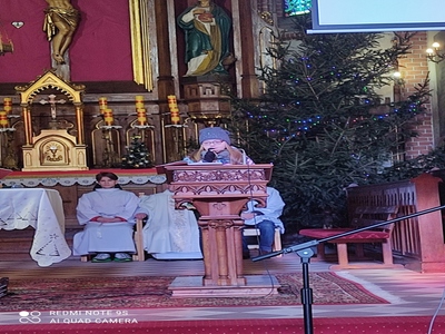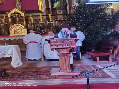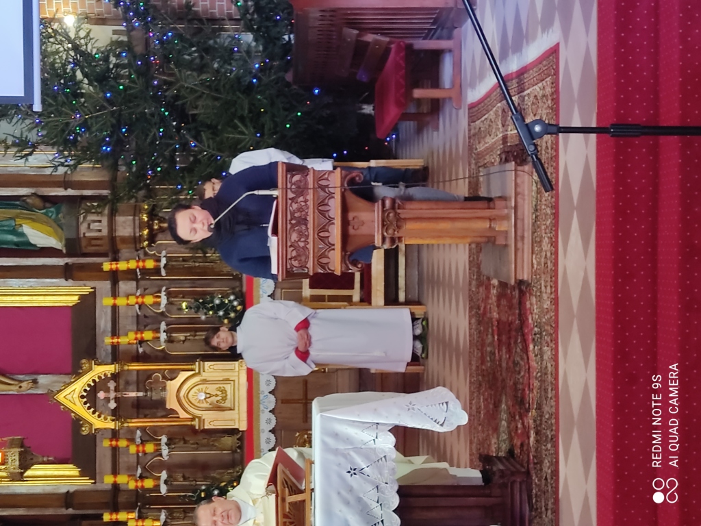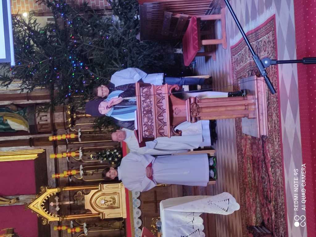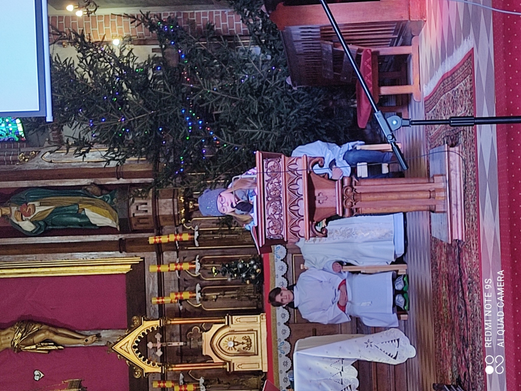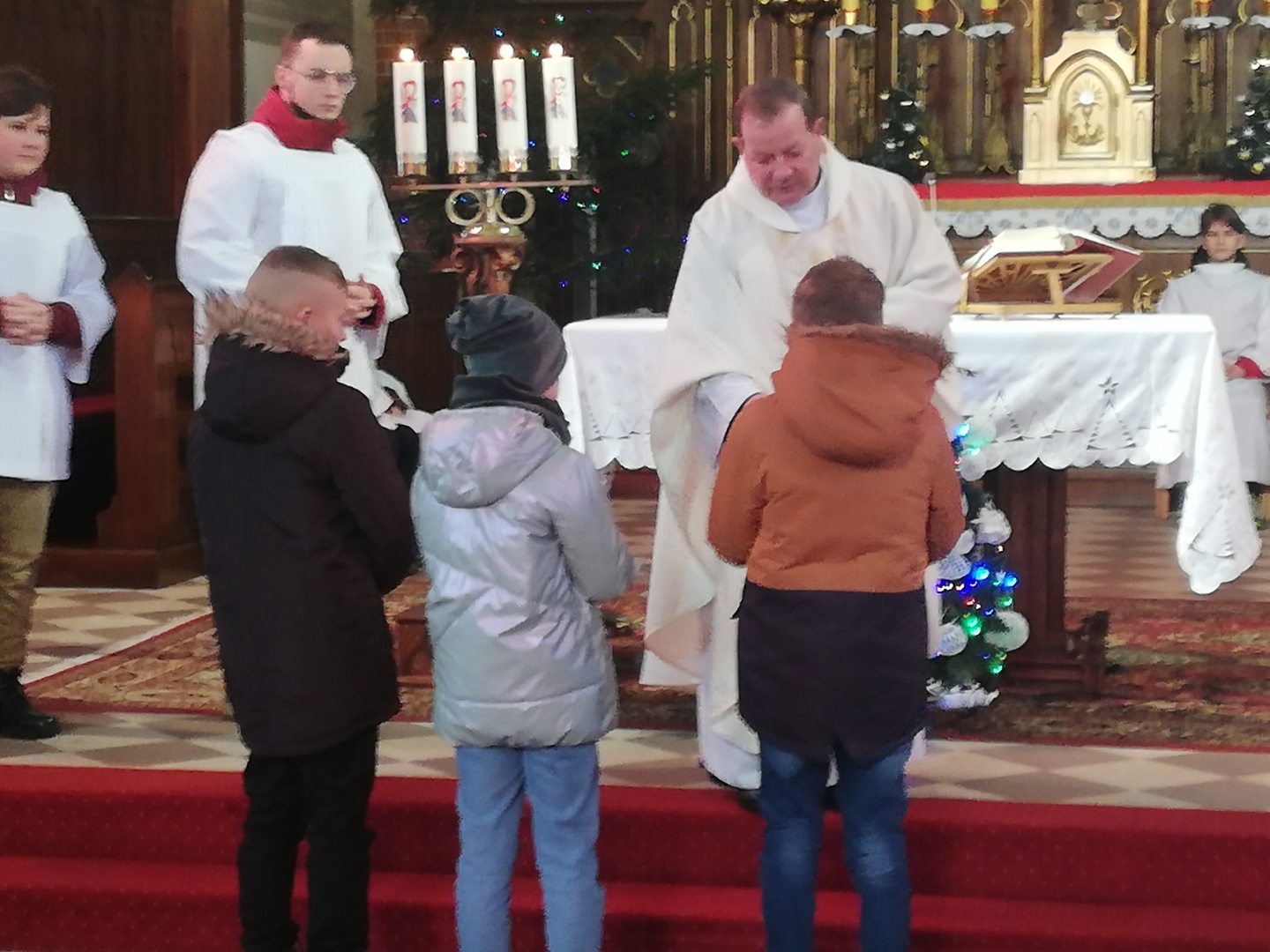 W ten wyjątkowy, święty czas uczniowie naszej szkoły razem z rodzicami oddawali cześć nowonarodzonemu Dzieciątku śpiewając kolędy i biorąc czynny udział w liturgii Mszy świętej. W podziękowaniu młodzi artyści otrzymali od księdza proboszcza słodkie upominki.