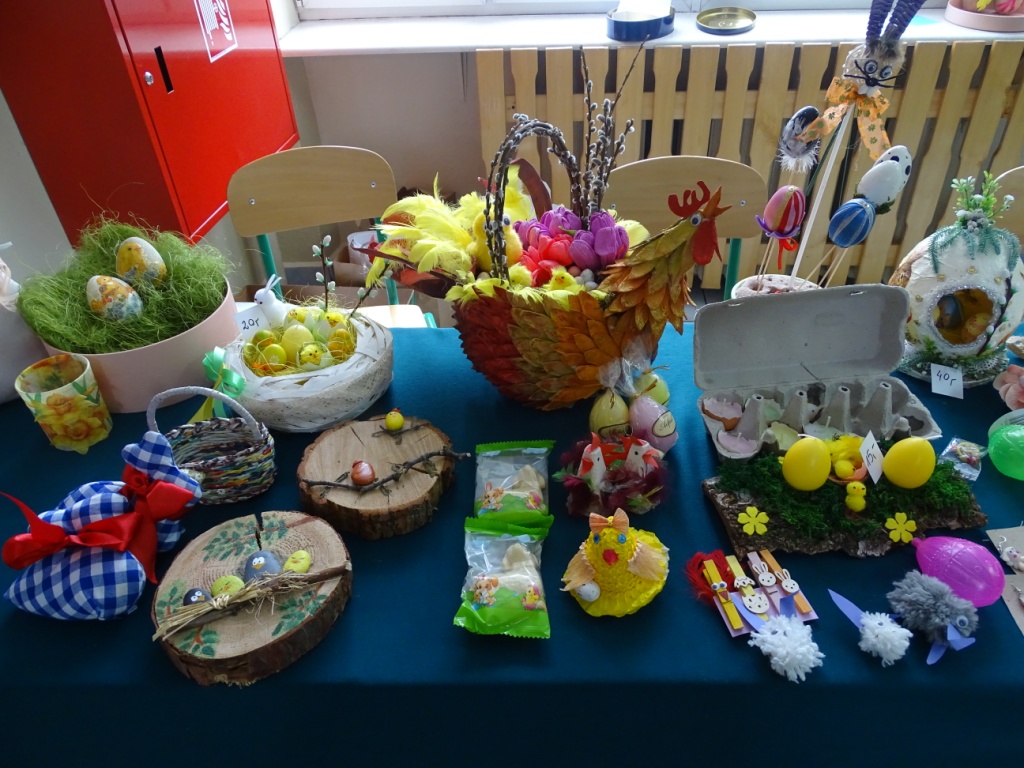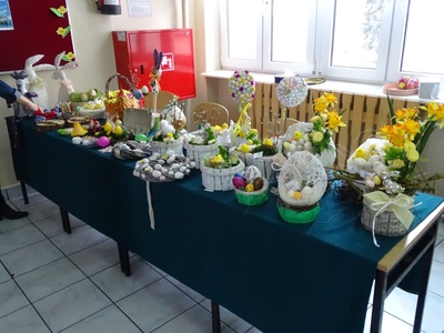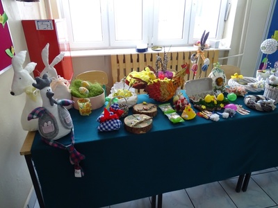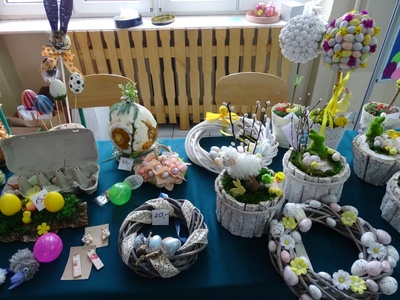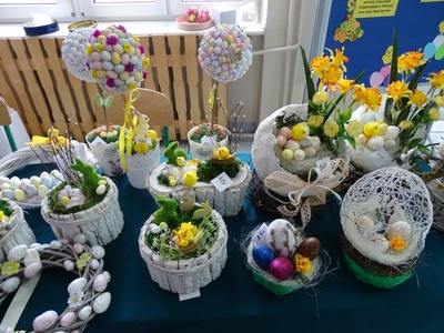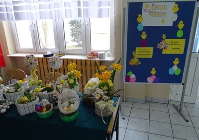 Święta Wielkiej Nocy to czas zadumy, dobroci, miłości , ale także radości z budzącej się do życia wiosny. To również czas robienia zakupów, porządków oraz dekorowania naszych mieszkań. W celu utrwalania tradycji i zwyczajów związanych ze Świętami Wielkanocnymi w naszej szkole już kolejny raz z inicjatywy Samorządu Uczniowskiego odbył się w dniach 5-6 kwietnia 2022 roku "Kiermasz Wielkanocny". Każdy mógł znaleźć coś dla siebie: oryginalne ozdoby wielkanocne, palmy, pisanki, kurczaczki, kartki świąteczne, stroiki. Wszystko zostało wykonane własnoręcznie przez uczniów, rodziców i nauczycieli naszej szkoły.