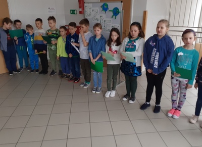 Na apelu były śpiewane piosenki o naszej planecie, recytowane wiersze i hasła, wspólnie rozwiązywany quiz z wiedzy przyrodniczej, a także zostało złożone przez wszystkie dzieci przyrzeczenie ekologiczne. W poszczególnych klasach podczas zajęć dydaktycznych dzieci wzbogacały swoją wiedzę w zakresie troski o naszą planetę i wykonywały prace plastyczne.