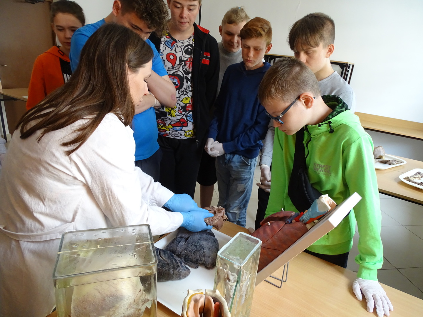 23 maja uczniowie klasy 7 PSP Czarnolas i klasy 7a PSP Policzna brali udział w zajęciach na UMCS - ie w Lublinie na Wydziale Biologii i Biotechnologii. Wykłady dotyczyły budowy anatomicznej człowieka a prowadzone były przez pracowników naukowych wydziału. Uczniowie podczas zajęć mogli zobaczyć i dotknąć autentyczne preparaty wybranych narządów człowieka z układu: pokarmowego, szkieletowego, krążenia, oddechowego, wydalniczego, rozrodczego i nerwowego. Mieli możliwość uczestniczenia w ćwiczeniach polegających na okreśłeniu wieku i płci osoby zmarłej na podstawie wielkości i stopnia skostnienia czaszki.