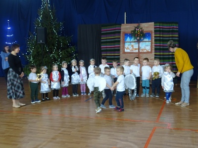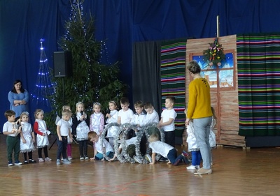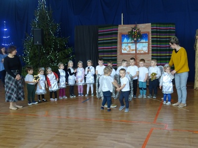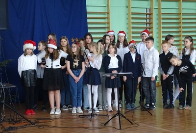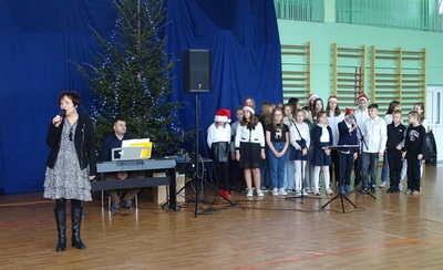 Po przerwie spowodowanej pandemią, w tym roku mogliśmy wrócić do naszej szkolnej tradycji kolędowania pod choinką. W ostatnim dniu nauki przed świętami cała społeczność szkolna i przedszkolna zebrała się w sali gimnastycznej. Były życzenia, słodkie pierniczki dla wszystkich uczniów ufundowane przez rodziców oraz oczywiście wspólne kolędowanie, które wprowadziło nas w świąteczny nastrój.