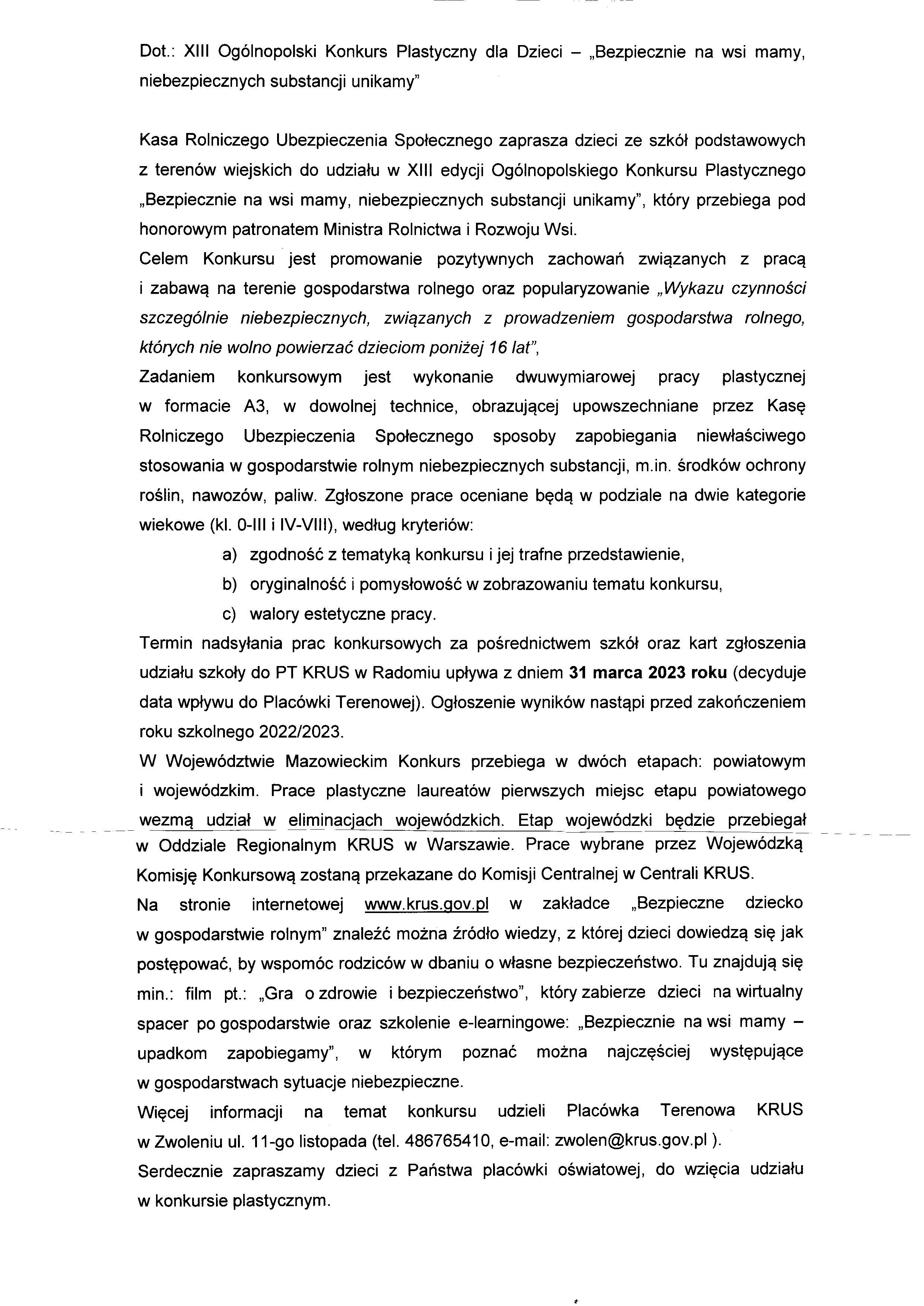 XIII OGÓLNOPOLSKI KONKURS PLASTYCZNY DLA DZIECI-BEZPIECZNIE NA WSI MAMY, NIEBEZPIECZNYCH SYTUACJI UNIKAMY Załączniki konkurs [1.12 MB] Zobacz również BAL KARNAWAŁOWY REKRUTACJA DO KLASY PIERWSZEJ W ROKU SZKOLNYM... REKRUTACJA DO PRZEDSZKOLA I ODDZIAŁU PRZEDSZKOLNEGO... XIII OGÓLNOPOLSKI KONKURS PLASTYCZNY DLA DZIECI-BEZPIECZNIE... Wygrana pierwszaków w plebiscycie Echa Dnia Spotkanie z policjantką – Bezpieczne Ferie 07 lutego 2023 Aktualności Wydrukuj Udostępnij Wyświetlono: 142