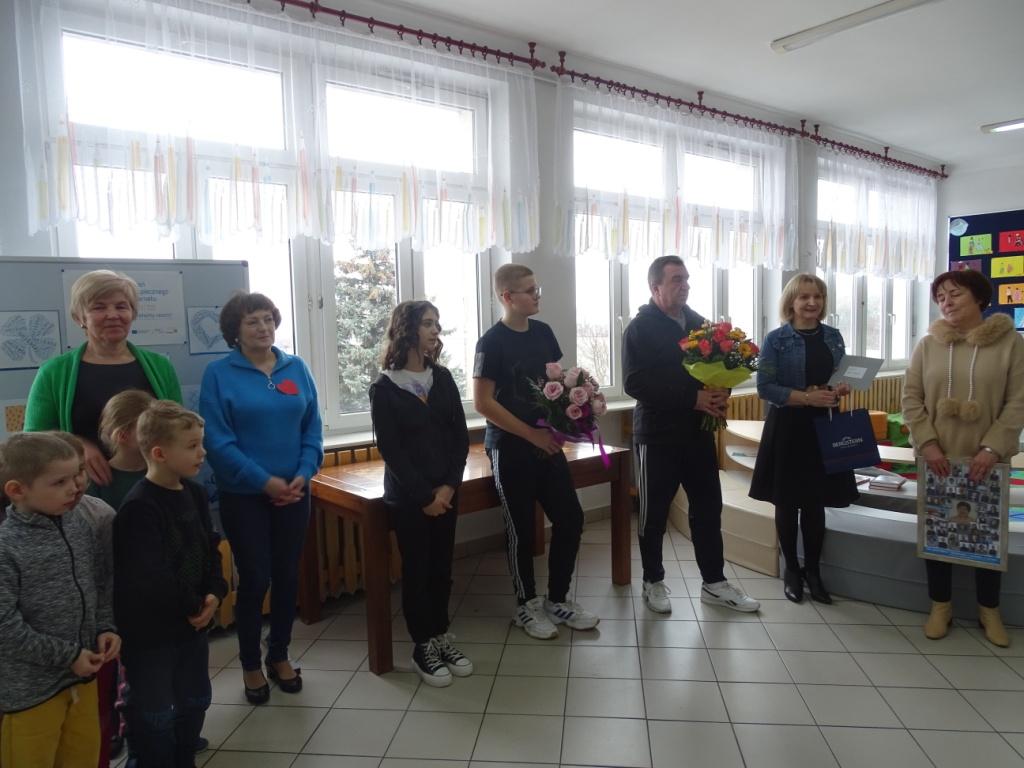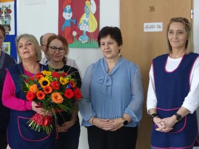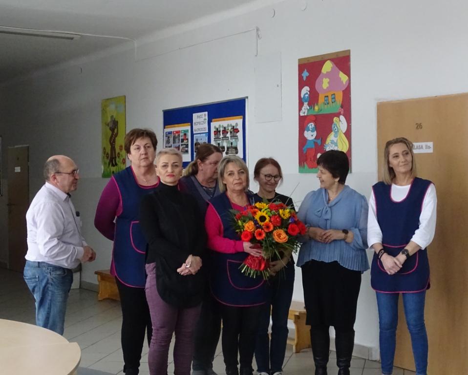 Pani Ewa Mazur pracowała w naszej szkole 18 lat jako pani woźna. Zawsze solidnie wywiązywała się ze wszystkich swoich obowiązków, a ponad to emanowało z niej ciepło i serdeczność zarówno w stosunku do przedszkolaków, uczniów, jak i wszystkich współpracowników.