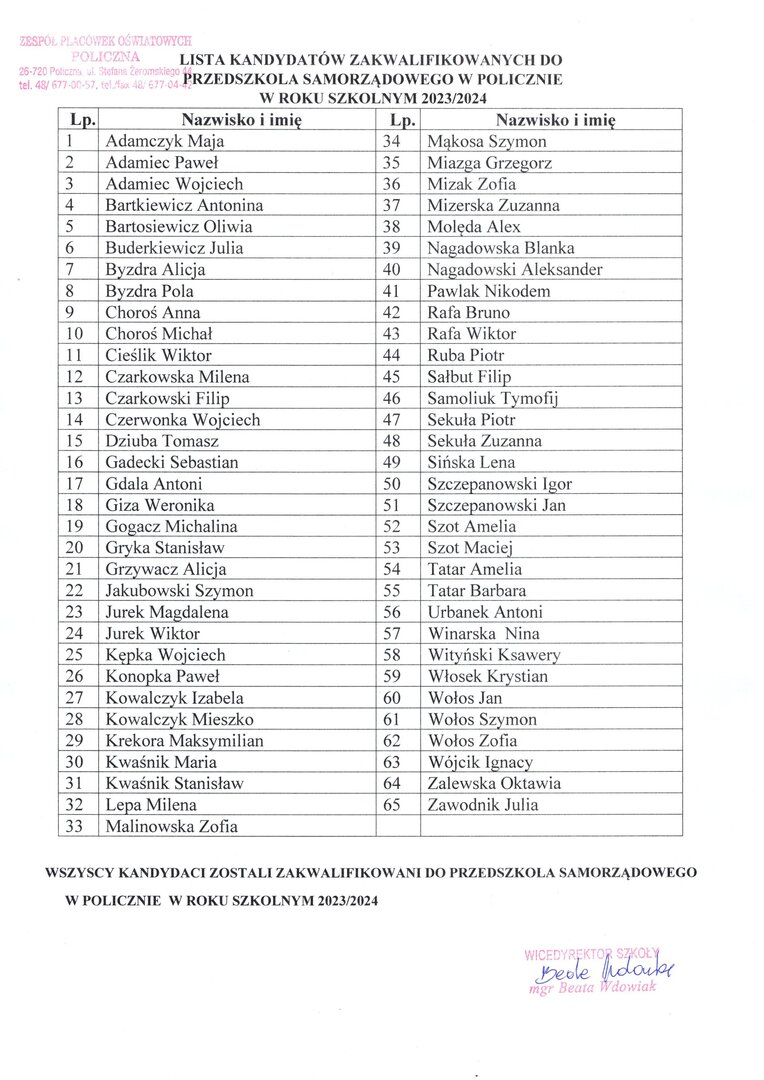 LISTA KANDYDATÓW ZAKWALIFIKOWANYCH DO PRZEDSZKOLA SAMORZĄDOWEGO NA ROK SZKOLNY 2023/2024 Zdjęcia Zobacz również 1 MARCA- DZIEŃ ŻOŁNIERZY WYKLĘTYCH Dzień Kobiet DZIEŃ KOBIET LISTA KANDYDATÓW ZAKWALIFIKOWANYCH DO PRZEDSZKOLA... LISTA KANDYDATÓW ZAKWALIFIKOWANYCH POWYŻEJ PIĘCIOGODZINNEJ... LISTA KANDYDATÓW ZAKWALIFIKOWANYCH DO ODDZIAŁÓW... 17 marca 2023 Aktualności Wydrukuj Udostępnij Wyświetlono: 159