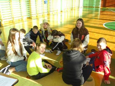 Dodatkowo klasy IV wzięły udział w zabawie „TreasureHunt”, polegającej na szukaniu odpowiednich miejsc w szkole i znajdowaniu odpowiedzi na pytania.