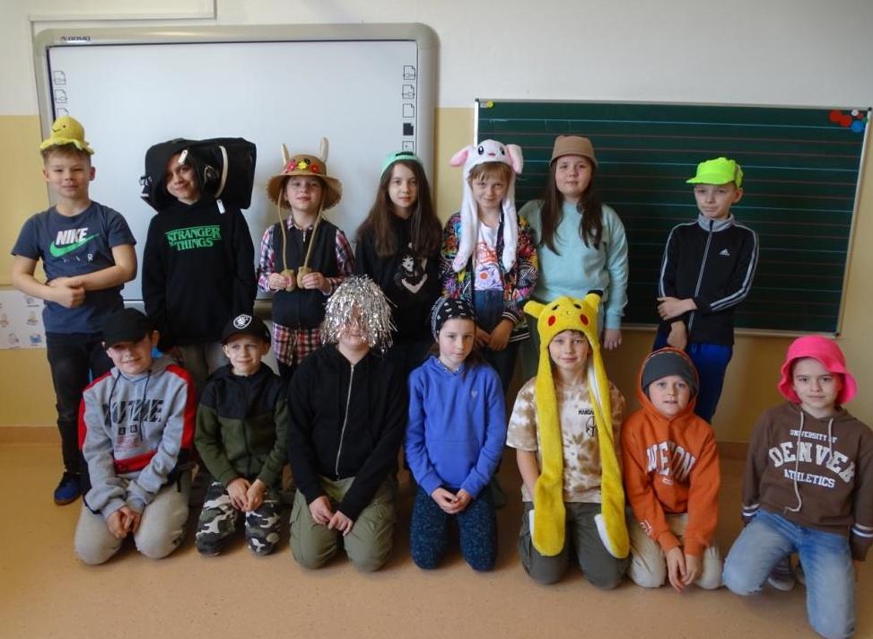 21 kwietnia obchodziliśmy w naszej szkole kolejny już raz DZIEŃ KAPELUSZA. Tego dnia uczniowie podczas pobytu w szkole prezentowali na swoich głowach najróżniejsze nakrycia głowy, nie tylko kapelusze. Mogliśmy więc podziwiać wspomniane kapelusze, ale także: toczki, maciejówki, dżokejki, kaszkiety a nawet … szyszak, durszlak, wiaderko.