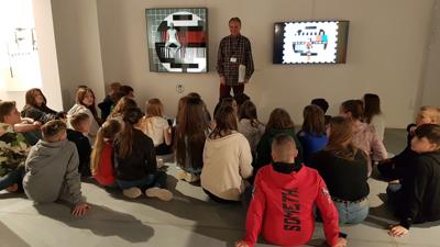 12 maja uczniowie klas 5ab i 6b odwiedzili Mazowieckie Centrum Sztuki Nowoczesnej „Elektrownia”. W galerii wzięli udział w warsztatach „wszystko widzę jako sztukę” oraz seansie filmowym „Czarodziejski flet”. Podczas warsztatów uczniowie tworzyli sztukę oraz ją rozpoznawali, a także m.in. łamali stereotypy w oparciu o prace Marcina Berdyszaka, zastanawiali się co jest piękne z Bogną Burską i jej pająkami, odgadywali co oznacza niebieska taśma Edwarda Krasińskiego. W sali kinowej z najlepszym dźwiękiem w Polsce delektowali się muzyką poważną podaną w sposób przystępny dla młodego odbiorcy - skrzyżowaniem Harry’ego Pottera z operą Mozarta.