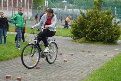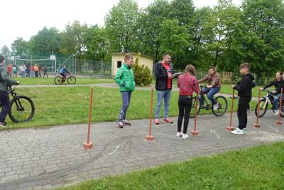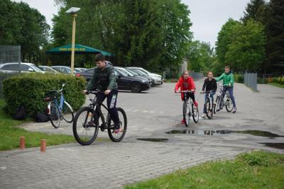Uczniowie klas czwartych w tym dniu przystąpili do egzaminu na Kartę Rowerową. Uczniowie klas 5-8 zmagali się z testami z zakresu bezpieczeństwa w ruchu drogowym oraz próbowali swoich sił na rowerowym torze przeszkód.