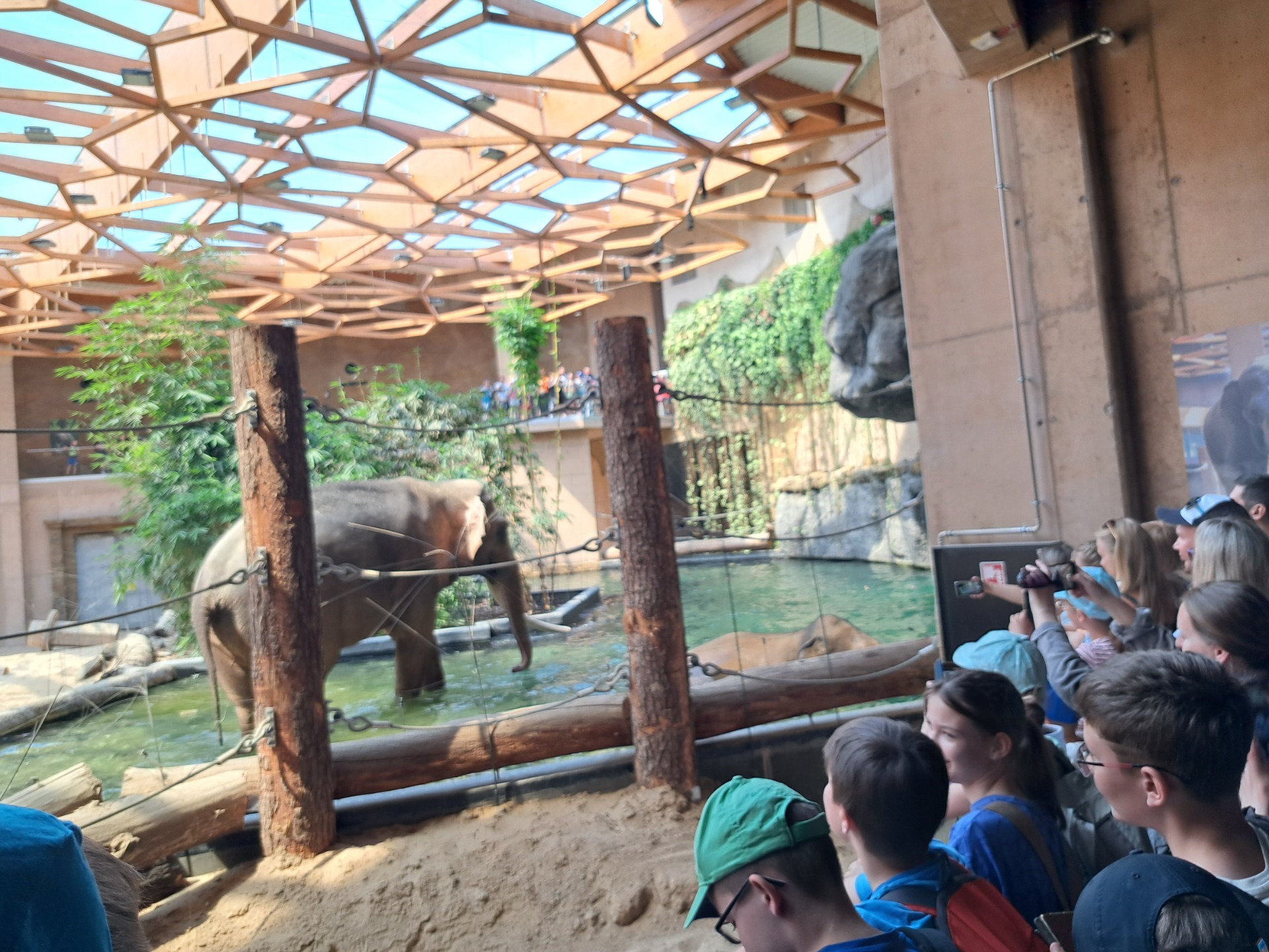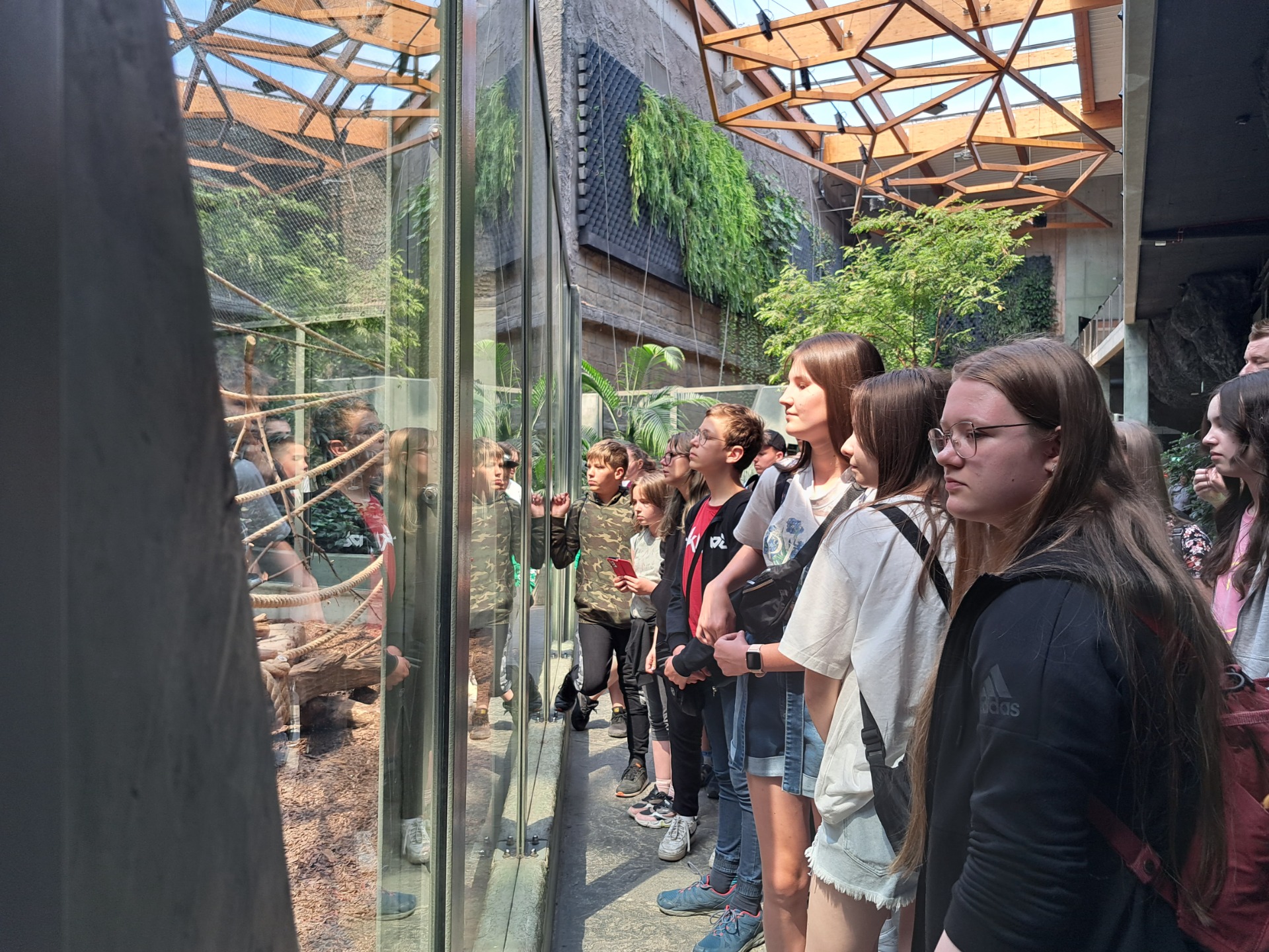 1 czerwca uczniowie naszej szkoły mieli okazję uczestniczyć w jednodniowej wycieczce do Łodzi. W programie wycieczki było zwiedzanie Orientarium Zoo Łodź – najnowocześniejszego w Europie pawilonu poświęconego faunie i florze Azji Południowo Wschodniej. Podczas zwiedzania uczestnicy wycieczki widzieli słonie indyjskie zażywające kąpieli, podwodny tunel z rekinami, płaszczkami oraz setkami innych gatunków ryb oraz dwa największe krokodyle w Europie – Krakena i Penelopę. Na dnie największego basenu umieszczona została replika myśliwca marynarki japońskiej z okresu II wojny światowej. W kolejnej części Orientarium uczniowie podpatrywali makaki lwie, których wybieg został wystylizowany na buddyjską świątynię. Na odkrytej przestrzeni zoo znajdowały się hipopotamy karłowate, tapiry, niedźwiedź malajski, pingwiny, żyrafy, emu, tygrysy i wiele innych.