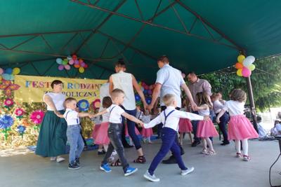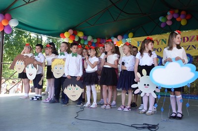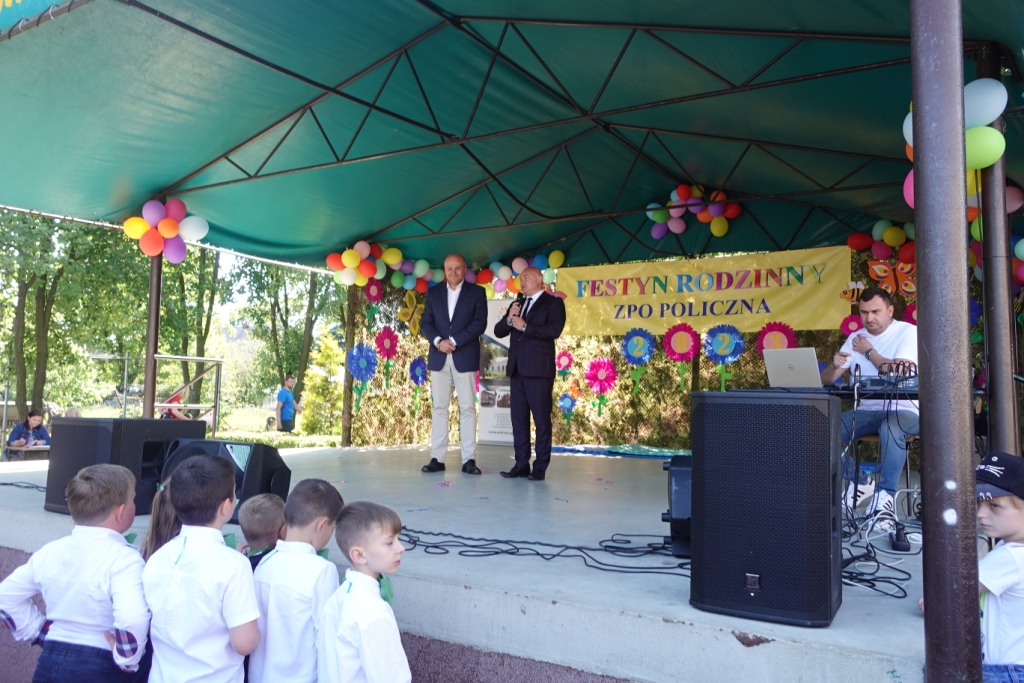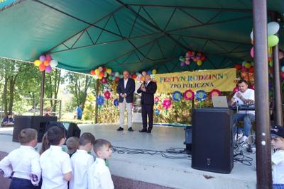 Niedziela, 4 czerwca, godz. 15.00 - organizatorzy - pan Tomasz Adamiec - Wójt Gminy Policzna, pani Anna Kiraga - wiceprzewodnicząca Rady Rodziców ZPO Policzna oraz dyrektor ZPO powitali uczestników festynu, złożyli życzenia wszystkim dzieciom oraz ich rodzicom, zapraszając do wspólnej zabawy.