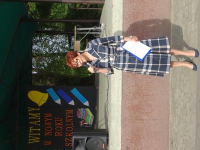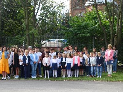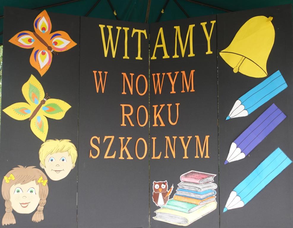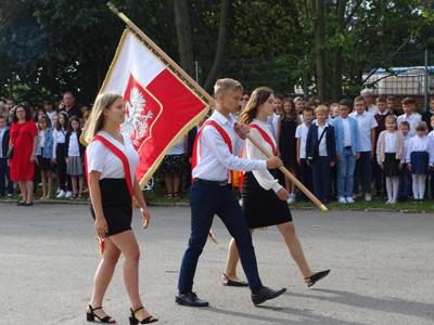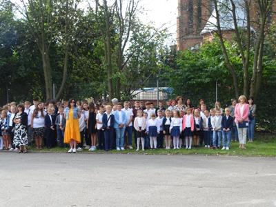 4 września, po przerwie wakacyjnej rozpoczęliśmy nowy rok szkolny 2023/2024. Część uczniów (szczególnie tych młodszych) już w sierpniu nie mogła doczekać się powrotu do szkoły. Jednak chyba większość dzieciaków wakacje mogłaby mieć przez cały rok. Jednakże panujący tego dnia dookoła radosny gwar pozwalał sądzić, że wszyscy cieszyli się z powrotu do szkoły…. O godzinie 800 w kościele parafialnym odbyła się Msza św., po której uczniowie, rodzice i nauczyciele zebrali się na placu szkolnym, gdzie przy dźwiękach Hymnu Państwowego oraz w obecności pocztu sztandarowego odbyła się uroczysta inauguracja nowego roku szkolnego. Pani dyrektor Jolanta Kalinowska serdecznie powitała wszystkich po wakacyjnej przerwie. Szczególnie ciepłe słowa skierowała do uczniów klas pierwszych i ich rodziców, gdyż jako nowi w naszej społeczności zasługują na wyjątkowe względy. Nie zapomniała także o ósmoklasistach życząc im sukcesów w nauce oraz wytrwałości w przygotowaniach do egzaminu. Pani dyrektor przekazała również zebranym najistotniejsze informacje dotyczące funkcjonowania naszej szkoły w nowym roku szkolnym.