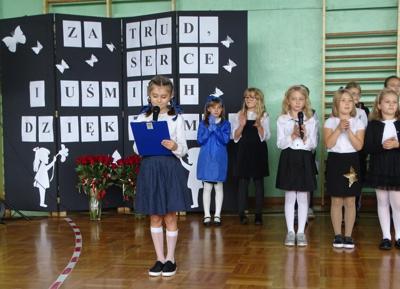 13 października 2023 roku w Publicznej Szkole Podstawowej im. Jana Kochanowskiego w Policznie odbyła się uroczysta akademia z okazji Dnia Edukacji Narodowej. Wzięli w niej udział zaproszeni goście: Przedstawicielka Urzędu Gminy Policzna p. Anna Wójtowicz, Przewodnicząca Rady Rodziców p. Dominika Gazda, Dyrekcja Szkoły: p. Jolanta Kalinowska i p. Beata Wdowiak, Grono Pedagogiczne, Pracownicy Administracji i Obsługi oraz uczniowie wszystkich klas. Uczniowie klas: II, IIIa i IIIb zaprezentowali się w montażu słowno - muzycznym przygotowanym pod kierunkiem wychowawczyń: Elżbiety Czerskiej, Barbary Głowackiej i Doroty Pawlak. Dzieci recytowały wiersze, śpiewały piosenki, którymi niezwykle ożywiły zebraną publiczność. Występ utrzymany był w wesołej i żartobliwej narracji, co podobało się wszystkim zebranym. Uczniowie poprzez krótki program artystyczny wyrazili swoje podziękowanie za serce, pomocną dłoń oraz przewodnictwo w niezwykle trudnej drodze do zdobywania wiedzy. Pod koniec uroczystej akademii wszyscy uczniowie zaśpiewali “100 lat!”. Następnie głos zabrała pani dyrektor Jolanta Kalinowska, która podziękowała uczniom za wspaniały występ. Oczywiście w takim dniu nie mogło zabraknąć życzeń, które złożyli wszystkim pracownikom szkoły przybyli goście. W dalszej części uroczystości zostały wręczone Nagrody Wójta Gminy Policzna oraz Nagrody Dyrektora Szkoły. Całości dopełniły piękne kwiaty, które otrzymali wszyscy nauczyciele i pracownicy administracji i obsługi.