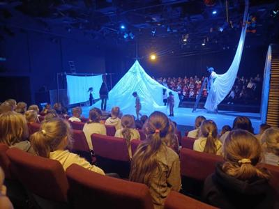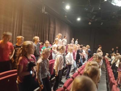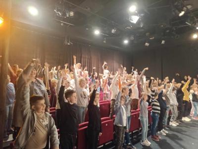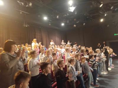 11 października 2023 r. klasy I-III wybrały się na wycieczkę do Teatru Powszechnego im. Jana Kochanowskiego w Radomiu, gdzie obejrzały spektakl pt. „Kto z was chciałby rozweselić pechowego nosorożca”. Celem wycieczki było umożliwienie kontaktu ze sztuką poprzez aktywne uczestnictwo oraz utrwalenie zasad prawidłowego zachowania w teatrze. Uczniowie byli zafascynowani miejscem, w którym znaleźli się po raz pierwszy czyli na Scenie Kameralnej z widownią po obu stronach. Wiele emocji wzbudziło u dzieci aktywne uczestnictwo w spektaklu, w którym grały przypisane im role. Sceneria, barwne kostiumy, nastrojowa muzyka oraz efekty specjalne na długo pozostaną w ich pamięci. Brawa i owacje na zakończenie spektaklu były wyrazem uznania za niezapomniane przeżycia i wrażenia. Do szkoły powróciliśmy zadowoleni, z uśmiechem na twarzy, nową wiedzą oraz odrobiną teatralnej magii.