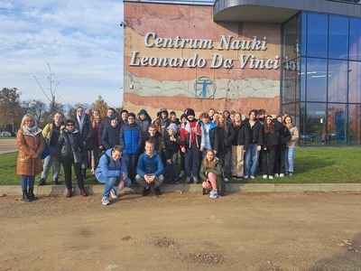 10 listopada 2023 r. uczniowie z klas szóstych, siódmych i ósmej wyjechali na wycieczkę do Centrum Nauki Leonardo da Vinci i jaskini Raj zlokalizowanych w okolicach Chęcin. Pobyt w Centrum Nauki to niezwykła okazja do rozbudzenia wśród uczniów zainteresowania naukami przyrodniczymi poprzez aktywne oglądanie wystaw multimedialnych „Człowiek – niezwykła maszyna” oraz „Człowiek – trybik w machinie przyrody”. Samodzielne myślenie, aktywny kontakt ze zjawiskami naukowymi , a także wcielanie się w rolę badacza to „wartość dodana” innej niż zwykle lekcji biologii, chemii czy fizyki.