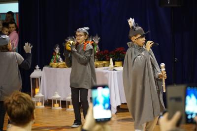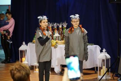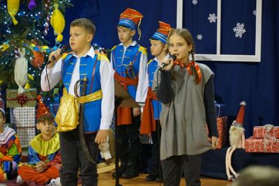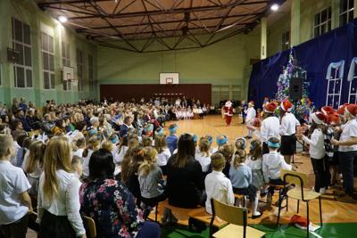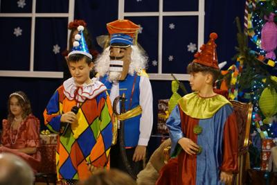 21 grudnia 2024 r. na kilka dni przed świętami zgodnie z naszą szkolną tradycją odbyło się Spotkanie Bożonarodzeniowe. Tego wieczora w nastrojowo udekorowanej sali gimnastycznej zgromadziło się liczne grono przedszkolaków, uczniów, rodziców, dziadków, nauczycieli, pracowników szkoły oraz zaproszeni goście. Organizatorzy tegorocznego spotkania zaskoczyli zabranych, bowiem zamiast tradycyjnych jasełek specjalnie na ten wieczór przygotowali przedstawienie „Dziadek do orzechów”. Wszyscy młodzi artyści bardzo się zaangażowali w jego przygotowanie. Do ostatniej chwili powtarzali tekst, poprawiali kostiumy. I było warto, bo przedstawienie było przepiękne, barwne, radosne i z przesłaniem. Strzałem w dziesiątkę okazało się zaproszenie do udziału w przedstawieniu przedszkolaków. W ich wykonaniu zebrani mogli zobaczyć trzy tańce: „Taniec cukrowej wróżki”, „Taniec dworski” oraz „Walc kwiatów” - wszystkie oczarowały zebranych. Publiczność zachwyciły nie tylko talenty aktorskie naszych artystów, ale także piękne kostiumy i niezwykle barwna, wręcz bajkowa scenografia. Całości dopełniała cudowna muzyka. Po przedstawieniu były życzenia, opłatek oraz coś bez czego święta nie byłyby tak magiczne - przepięknie wykonane przez solistów, uczniów klas I-III, chór szkolny oraz nauczycieli i pracowników obsługi kolędy i pastorałki. Na zakończenie Pani dyrektor podziękowała wszystkim za przygotowanie tegorocznego Spotkania Bożonarodzeniowego oraz złożyła wszystkim zebranym życzenia z okazji zbliżających się Świąt Bożego Narodzenia. Do podziękowań i życzeń dołączyli się również zaproszeni goście. Na zakończenie wszyscy zebrani łamali się opłatkiem, składali sobie życzenia i śpiewali kolędy.