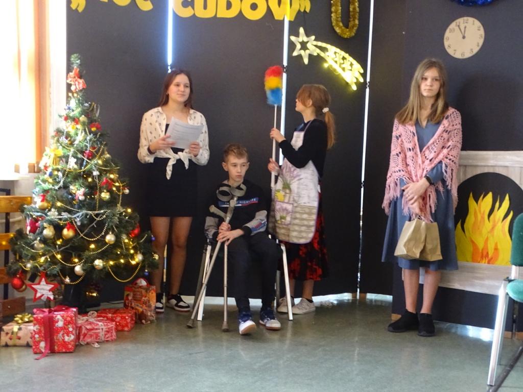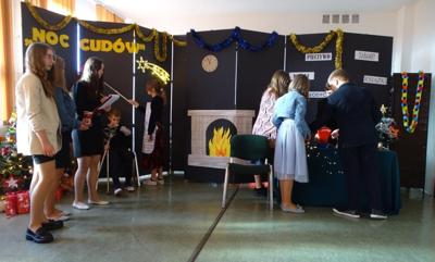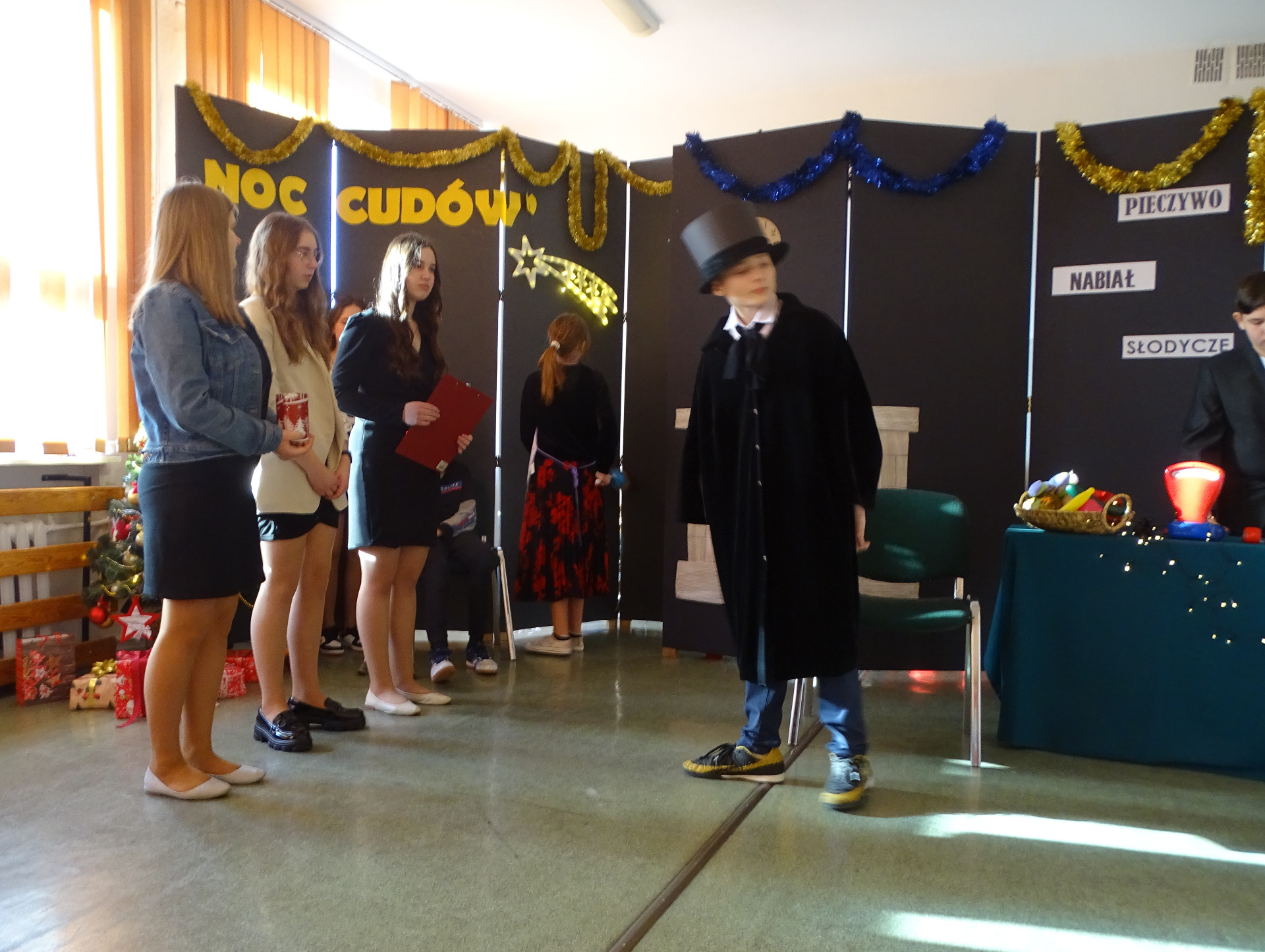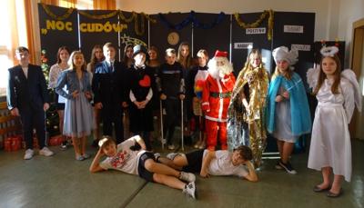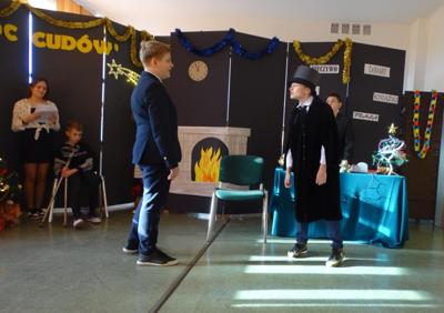 5 stycznia Szkolne Koło Teatralne zaprosiło uczniów klas IV-VIII na kolejne premierowe przedstawienie. Była to „Noc cudów” oparta na motywach „Opowieści wigilijnej” Karola Dickensa. Spektakl sprawił, że niezwykłą atmosferą świąt mogliśmy się cieszyć jeszcze przez kolejne dni i z nadzieją, która była jego głównym przesłaniem, wkroczyć w Nowy Rok.