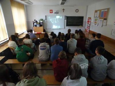 Uczniowie z zainteresowaniem obejrzeli też filmy fabularne poświęcone tematyce holocaustu - „Chłopiec w pasiastej piżamie” i „Historia Kowalskich”, a także wysłuchali prelekcji przedstawiciela Delegatury IPN z Radomia o polskich rodzinach ukrywających Żydów na naszym terenie.