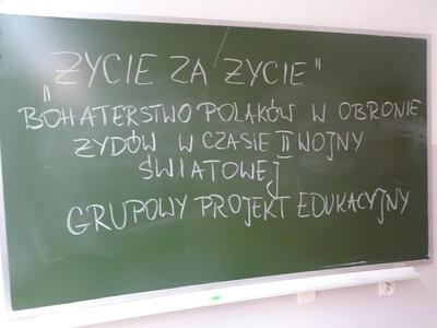 W dniach od 5 do 9 lutego uczniowie klasy 7a, 7b i 8 realizowali grupowy projekt edukacyjny pod hasłem „Życie za życie – bohaterstwo Polaków w obronie Żydów w czasie II wojny światowej”. Celem projektu było poszerzenie wiedzy uczniów na temat II wojny światowej, a przede wszystkim zaangażowania Polaków w obronę narodu żydowskiego w obliczu holocaustu. Niezwykle ważnym aspektem tego przedsięwzięcia stało się również wdrażanie uczniów do samodzielnego rozwiązywania problemów oraz rozwijanie kreatywności i umiejętności współpracy w grupie.