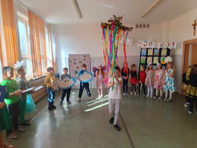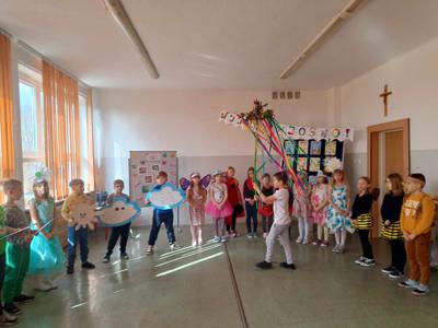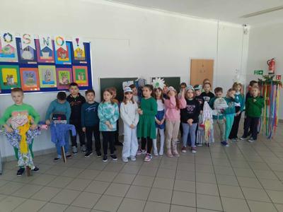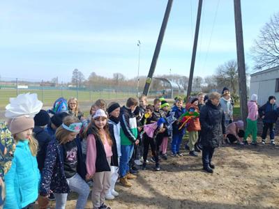 W dniach 11-15.03 uczniowie klasy 2 realizowali projekt edukacyjny „Zimę żegnamy, wiosnę witamy”. Drugoklasiści przez cały tydzień doskonali technikę pracy projektowej. Uczniowie większość działań wykonywali w grupach oraz zespołowo. Ćwiczyli umiejętność współpracy, aby ostatecznie osiągnąć zaplanowany cel. 20 marca nastąpiło podsumowanie projektu w obecności kolegów i koleżanek z klas 1-3. Uczniowie zaprezentowali krótki montaż słowno-muzyczny. Były przyśpiewki, wiersze i zagadki o wiośnie, Taniec Kwiatów i Motyli oraz taniec i śpiew piosenki w języku angielskim. Następnie wszyscy uczestnicy spotkania ochoczo wybrali się na pierwszy wiosenny spacer i poprzez symboliczne spalenie Marzanny z radością powitali długo wyczekiwaną wiosnę.