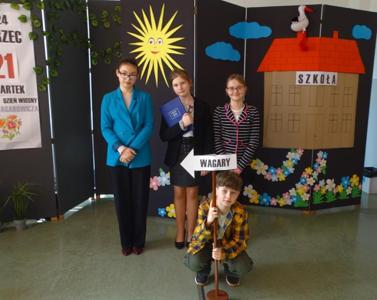 W czwartek 21 marca Szkolne Koło Teatralne zaprosiło uczniów klas IV-VIII oraz nauczycieli na specjalny program poświęcony powitaniu wiosny. Tym razem uczniowie zaprezentowali się nie tylko w zabawnych scenkach dotyczących wagarowania, ale również w pokazie zomby i śpiewie, a wszystko po to, aby pokazać, że szkoła to „jest fajne miejsce”, nawet w Dniu Wagarowicza.