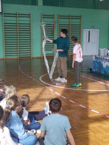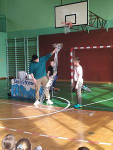 8 kwietnia 2024 r. w naszej szkole Grupa Zaelektryzowani zaprezentowała pokazy chemiczne pod tytułem „Naukowa epidemia, czyli czary mary i alchemia”. Prowadzący przedstawili fascynujące eksperymenty dotyczące powietrza, wody, ciekłego azotu oraz sił grawitacji. Uczniowie chętnie angażowali się w realizację doświadczeń i z zaciekawieniem obserwowali różnorodne zjawiska fizyczne i chemiczne.