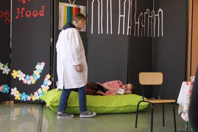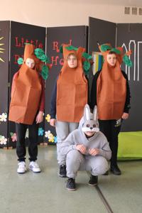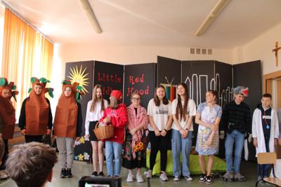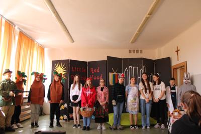 26 kwietnia 2024r. w ramach Dnia Języków Obcych w naszej szkole uczniowie starszych klas mieli okazję zaprezentować się swoim młodszym kolegom w przedstawieniu o Czerwonym Kapturku. Uwspółcześniona wersja pokazała Kapturka jako dziewczynkę mieszkającą z rodzicami w penthousie, spędzającą czas na przeglądaniu swojego telefonu i robieniu zdjęć wraz z koleżankami. Pojawił się także lekarz diagnozujący u babci koronawirusa i przepisujący lekarstwo. A znudzona i chora babcia, oglądająca programy w telewizji, oczekiwała na kapturka z zakupami. Oczywiście nie zabrakło wilka i gajowego. Uczniowie prezentowali dialogi w j.angielskim, świetnie się przy tym bawiąc.