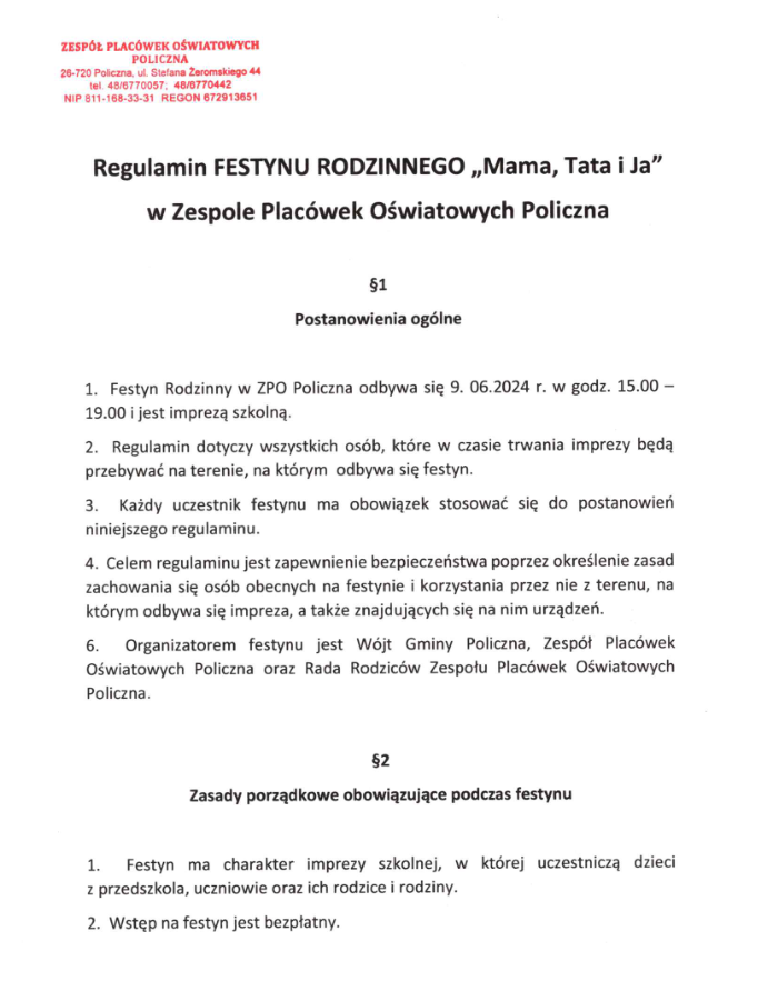 REGULAMIN FESTYNU RODZINNEGO MAMA, TATA I JA W ZESPOLE PLACÓWEK OŚWIATOWYCH POLICZNA Zobacz również OGŁOSZENIE FESTYN RODZINNY Program dla szkół 2023/2024 REGULAMIN FESTYNU RODZINNEGO MAMA, TATA I JA W... WARSZTATY MALARSKIE Hello Ice - Bezpieczna Budowa obok Ciebie 06 czerwca 2024 Aktualności Wydrukuj Udostępnij Wyświetlono: 153