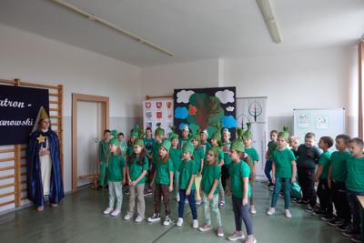 W dniu 4 października 2024r. uczniowie klas pierwszych posadzili lipy w ramach VI Pikniku Literackiego ,,Psalmoteka”, ku czci patrona naszej szkoły – Jana Kochanowskiego. Uroczystość rozpoczął program artystyczny w wykonaniu pierwszoklasistów, którzy zaprezentowali się jako przyjaciele przyrody – Leśne Duszki. Następnym punktem programu było posadzenie przez uczniów dwóch lip, pod czujnym okiem Pani Henryki Janik oraz Dyrekcji szkoły. Uczniowie zobowiązali się, że będą dbali o posadzone drzewa, aby rosły razem z nimi przez długie lata. Wielką atrakcją dla dzieci były przeprowadzone przez nauczycielki we współpracy z Castorama Polska zajęcia warsztatowe ,,Majsterkowo”. Dla wielu pierwszaków była to pierwsza okazja do samodzielnego wbijania gwoździ w drewno. Uczniowie własnoręcznie wykonali drewniane lokomotywy i wagony, co było dla nich niezapomnianym doświadczeniem.