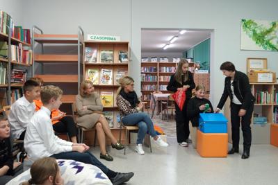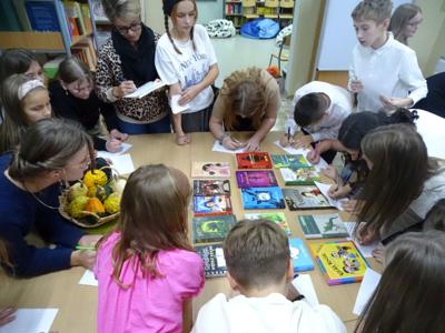 - „Magiczna skrzynia”, w której znajdowały się przeróżne przedmioty, a zadanie polegało na wylosowaniu jednego z nich i skojarzenie z nim tytułu książki lub bohatera literackiego. Zabawa była fantastyczna, a skojarzenia literackie bardzo udane.