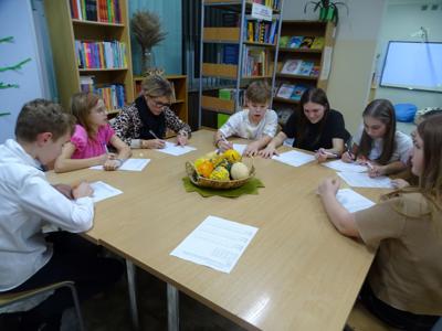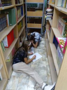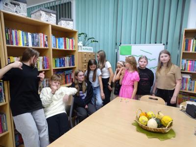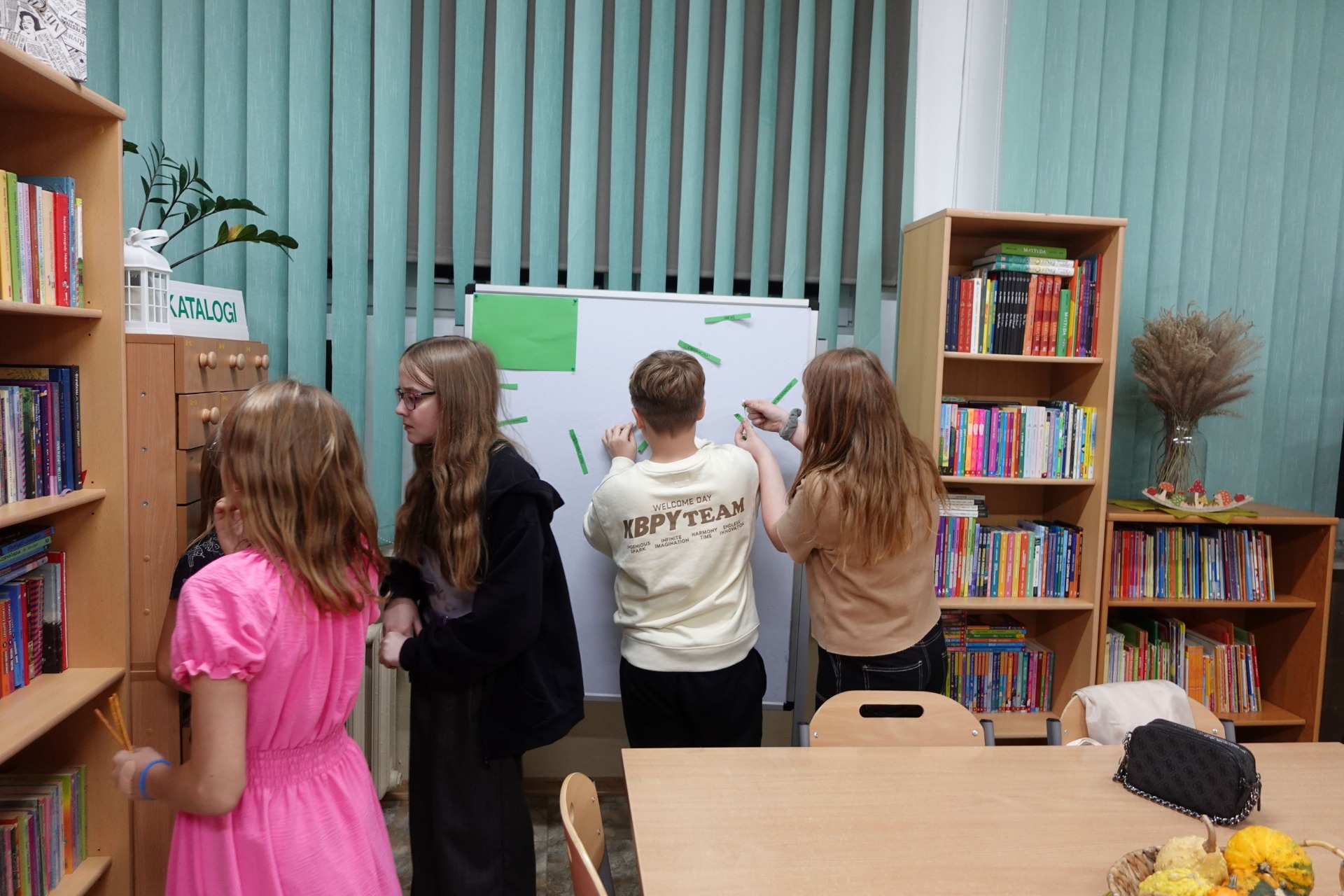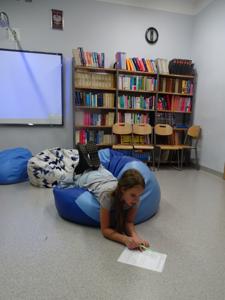 - „Poszukiwanie zagubionych tytułów książek” – zadanie uczestników polegało na odszukaniu ukrytych fragmentów tytułów książek i ułożenie ich w całość. Dodatkową atrakcją tego zadania była rywalizacja, uczniowie podzieleni byli na dwie drużyny i zadanie wykonywali na czas.