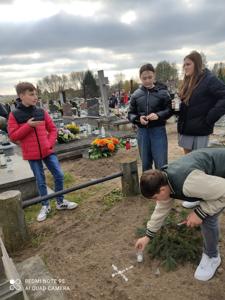 Z dużym zaangażowaniem uczniowie posprzątali nagrobki, grabili liście w alejkach pomiędzy nimi i złożyli wykonane samodzielnie wieńce. Dzięki tej akcji uczniowie nauczyli się szacunku dla tradycji i poszanowania miejsc pamięci. Uczniowie wiedzą, że szacunek dla zmarłych wyrażamy także poprzez zadbanie o miejsce pochówku.