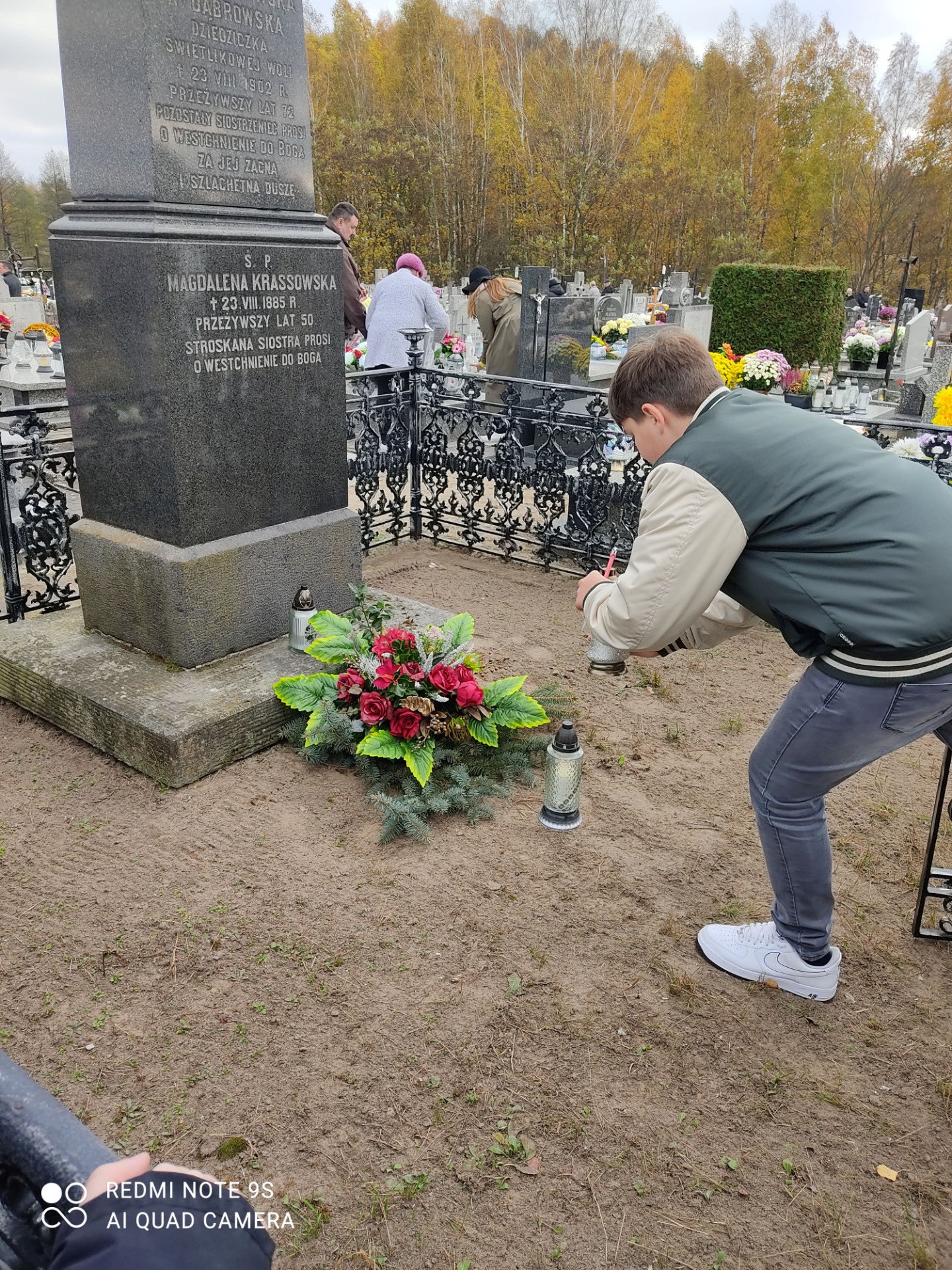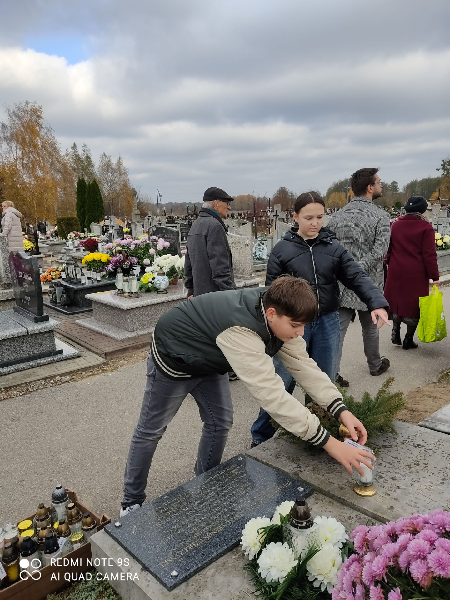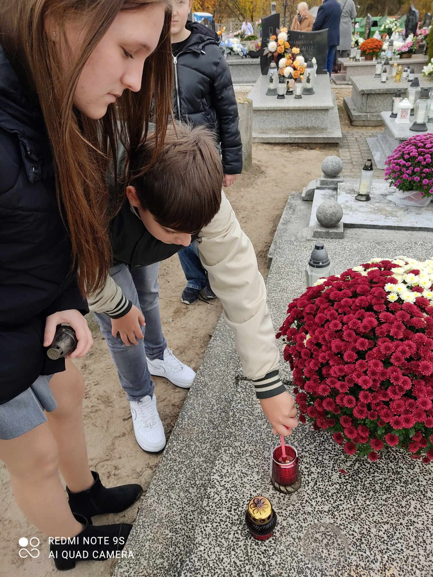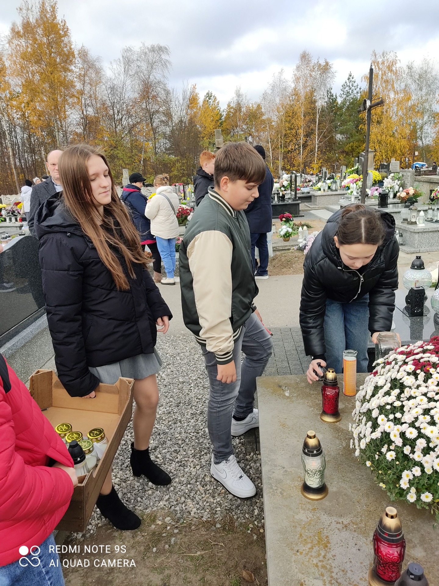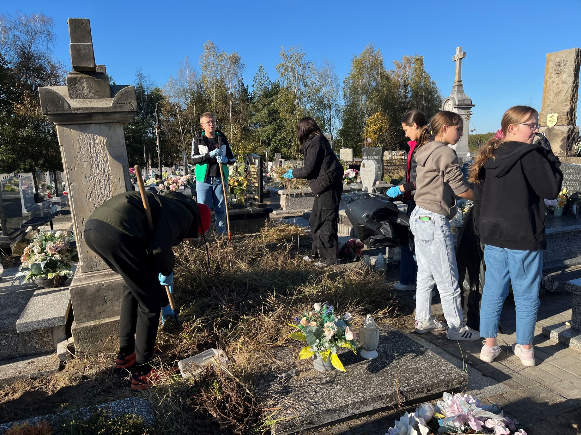 Święto Zmarłych jest również dniem pamięci narodowej. Z tej okazji Szkolne Koło Wolontariatu zorganizowało zbiórkę zniczy, które zapłonęły w tych ważnych dniach na grobach osób zasłużonych . Ponadto 17.10.2024 r. grupa wolontariuszy pod opieką p. Marzeny Posłowskiej, p. Marty Wieraszki, p. Olgi Adamiec i p. Pauliny Dziuby podjęła się sprzątania grobów i pomników żołnierzy, powstańców, księży i kierownika szkoły.