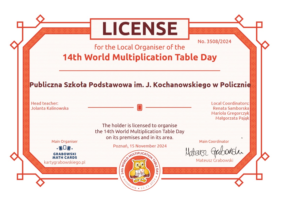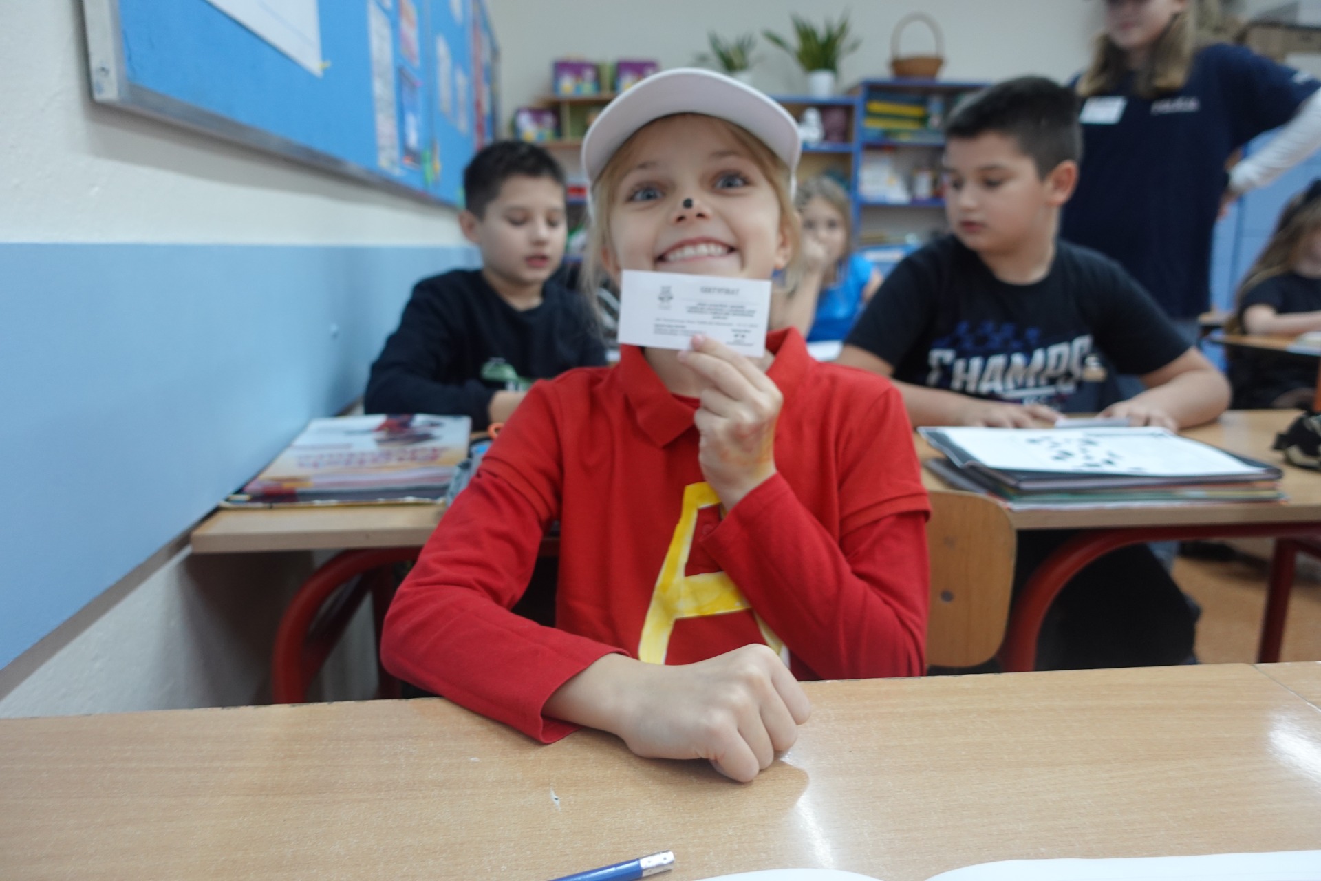a ci, którzy podali poprawne odpowiedzi, zostali nagrodzeni certyfikatami ekspertów tabliczki mnożenia. Ci, którym zabrakło trochę szczęścia lub znajomości liczb, otrzymali... "mandaty"! Oczywiście w duchu dobrej zabawy, które mają zmotywować ich do dalszej nauki.