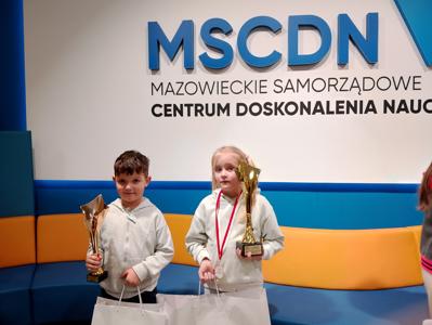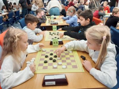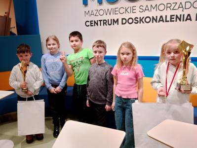 3 grudnia 2024 r. w Mazowieckim Samorządowym Centrum Doskonalenia Nauczycieli w Warszawie odbył się II Finałowy Turniej Warcabowy organizowany w ramach projektu „Warcaby w mazowieckiej szkole”. Turniej zgromadził najlepszych graczy z całego Mazowsza, w tym 6 uczniów z naszej szkoły, z czego jesteśmy niezmiernie dumni. Nasi uczniowie z klas I- III wykazali ogromne zainteresowanie turniejem, a ich umiejętności w planowaniu i wykonywaniu ruchów w warcabach były na bardzo wysokim poziomie. Rozrywki odbywały się w podziale na grupy wiekowe: klasy I, II i III. Każde dziecko rozegrało osiem partii z różnymi rywalami. Emocje towarzyszyły każdemu meczowi – dzieci raz wygrywały, raz przegrywały, ucząc się przy tym cennych lekcji strategii i wytrwałości. Wszystkim zawodnikom serdecznie gratulujemy, a szczególnie uczniom klas pierwszych: Hani Choroś, która zajęła pierwsze miejsce w kategorii dziewcząt oraz Marcelowi Molędzie, który zajął trzecie miejsce w kategorii chłopców.
