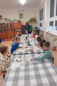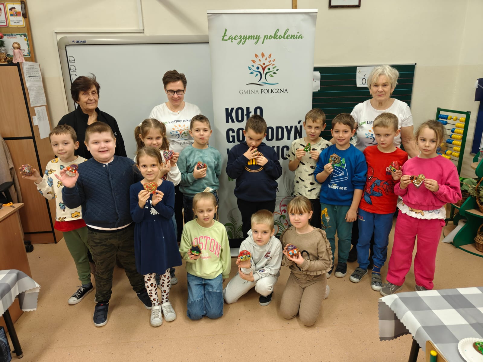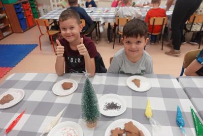 10 grudnia uczniowie klas pierwszych uczestniczyli w warsztatach świątecznych, przygotowanych przez członkinie Koła Gospodyń Wiejskich „Łączymy pokolenia” z Policzny, podczas których zapoznali się ze świąteczną tradycją ozdabiania pierników. Panie upiekły pierniki, a do ich przyozdobienia przygotowały kolorowe lukry i różnorodne posypki. Dzieci z entuzjazmem i kreatywnością przystąpiły do zdobienia pierników, a potem – z jeszcze większym apetytem – je zjadały. Miła atmosfera i świąteczny nastrój sprawiły, że zajęcia na długo pozostaną w ich pamięci.