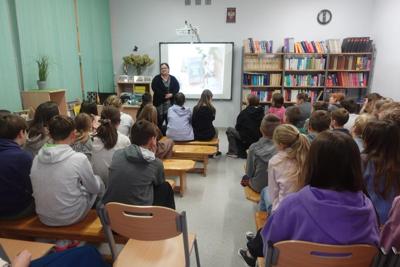 W spotkaniu uczestniczyli uczniowie klas piątych i szóstych. Podczas spotkania poznali oni cały proces powstawania książki, od pomysłu do końcowego efektu jakim jest książka, którą możemy kupić w księgarni lub wypożyczyć w bibliotece. Dowiedzieli się także skąd autorzy czerpią inspiracje do swoich książek. W dalszej części spotkania pani Marta prezentowała swoje książki, czytała ich wybrane fragmenty, opowiadała o ulubionym Jeżu Emeryku.Uczestnicy spotkania byli bardzo zaciekawieni i aktywni, zadawali całe mnóstwo pytań. Uczniowie mogli także kupić książki pisarki z autografem. Dziewięćdziesiąt minut spotkania minęło bardzo szybko, tak szybko, że zabrakło czasu na wspólne zdjęcie.