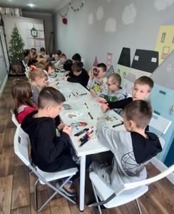 Warsztaty z malowania na szkle lub dekorowania płaskich drewnianych bombek przez uczniów klas I – III z Publicznej Szkoły Podstawowej im. Jana Kochanowskiego w Policznie, to wspaniała inicjatywa, która łączy edukację z kreatywną zabawą. W zajęciach warsztatowych wzięli udział wszyscy uczniowie z klas I-III. Dzieci z klasy drugiej i trzeciej malowały na szkle, a uczniowie klas pierwszych ozdabiali drewniane zawieszki o różnych kształtach na choinkę. Każde dziecko miało okazję stworzyć szklany obraz, unikalną ozdobę choinkową, którą zabrało do domu jako pamiątkę. Wspólne tworzenie ozdób świątecznych wprowadziło dzieci w magiczny, świąteczny nastrój.