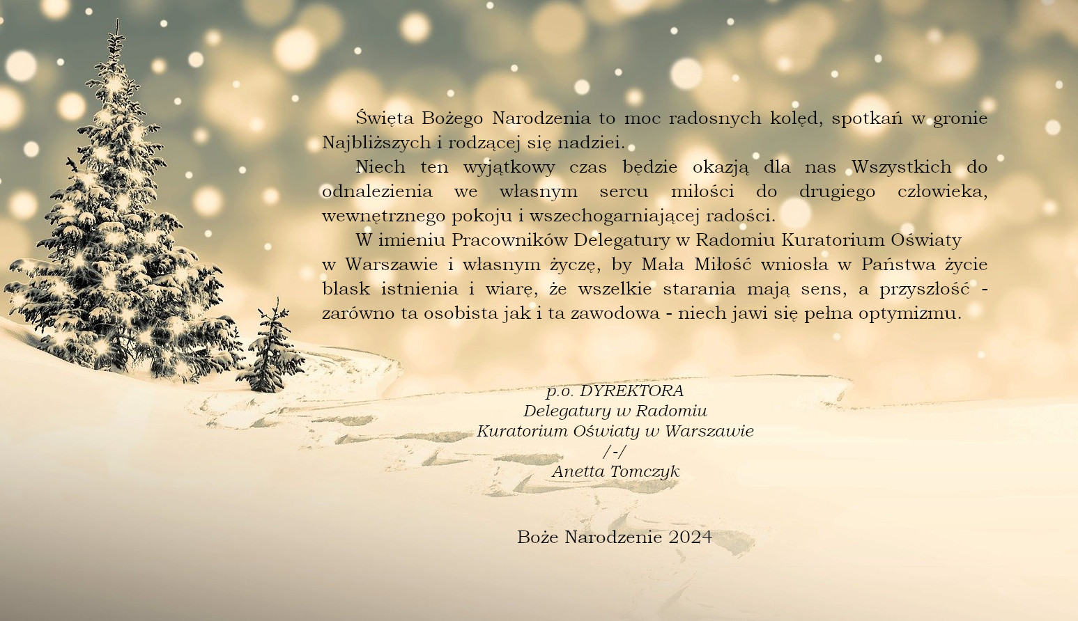 ŻYCZENIA Zdjęcia Zobacz również PODZIĘKOWANIA ŻYCZENIA ,,Świąteczny czas”- edukacyjny projekt klas pierwszych. ŻYCZENIA JASEŁKA BOŻONARODZENIOWE HARMONOGRAM ZAJĘĆ Z JĘZYKA ANGIELSKIEGO W ŚWIETLICY... 18 grudnia 2024 Aktualności Wydrukuj Udostępnij Wyświetlono: 139