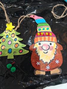- uczestniczyli w warsztatach w ,,Krainie Zabawy”, na których własnoręcznie ozdabiali drewniane zawieszki na choinkę