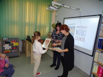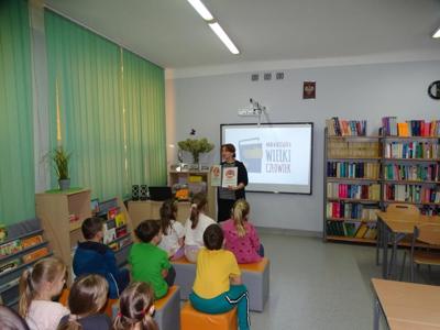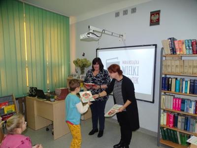 Pierwszoklasiści podczas wizyty w bibliotece szkolnej najpierw wysłuchali fragmentów wspomnianej książki, a następnie otrzymali, każdy swój egzemplarz książki oraz dyplom Superczytelniczki lub Superczytelnika. Mamy nadzieję, że książki, które otrzymali najmłodsi czytelnicy, którzy dopiero zaczynają przygodę z czytaniem zachęcą ich do częstego i regularnego czytania, zarówno samodzielnego, jak i z udziałem najbliższych- rodziców, dziadków, opiekunów.