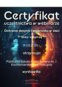 Uczniowie wzięli również udział w webinariach online prowadzonych przez ekspertów Urzędu Komunikacji Elektronicznej "Chroń swoje dane w sieci".