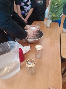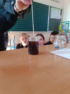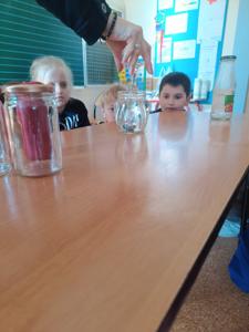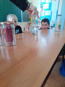 Nie zabrakło także fascynujących doświadczeń! Trzecioklasiści bawili się nauką, przeprowadzając eksperymenty m. in. z wodą, jajkiem, monetą, świecą, solą i innymi przedmiotami codziennego użytku.