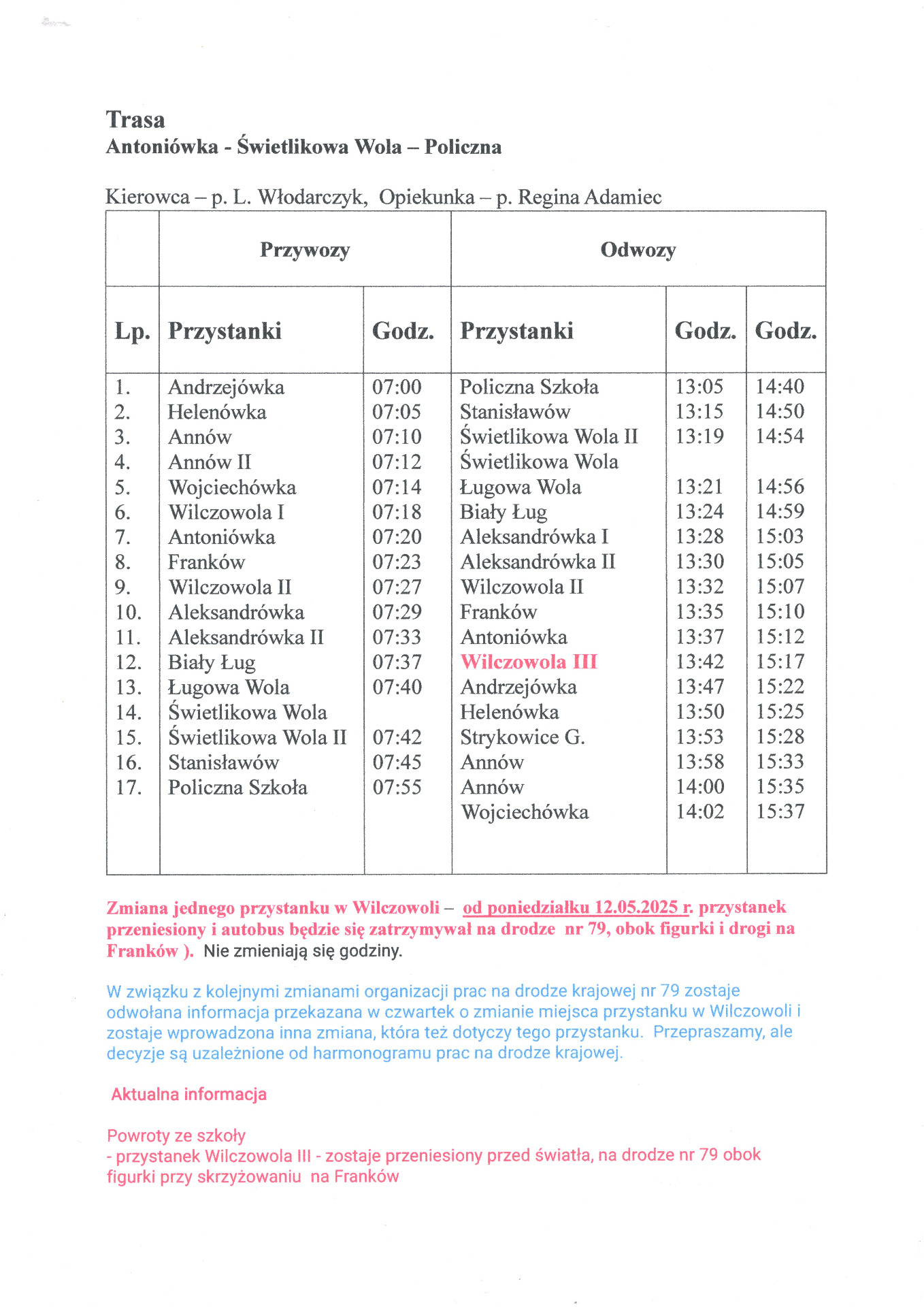 UWAGA !!! ZMIANA PRZYSTANKU W WILCZOWOLI Zdjęcia Zobacz również Dzień Ziemi w klasach 1-3 ŚWIĘTA MAJOWE Aktywna tablica UWAGA !!! ZMIANA PRZYSTANKU W WILCZOWOLI Uczniowie klas ósmych na wycieczce zawodoznawczej... ZMIANA ADRESU URZĘDU DANYCH OSOBOWYCH 09 maja 2025 Aktualności Wydrukuj Udostępnij Wyświetlono: 130