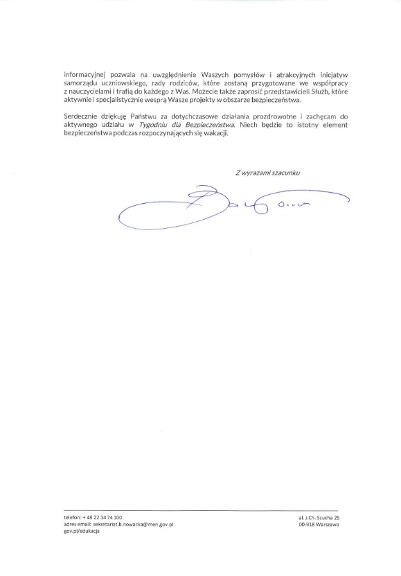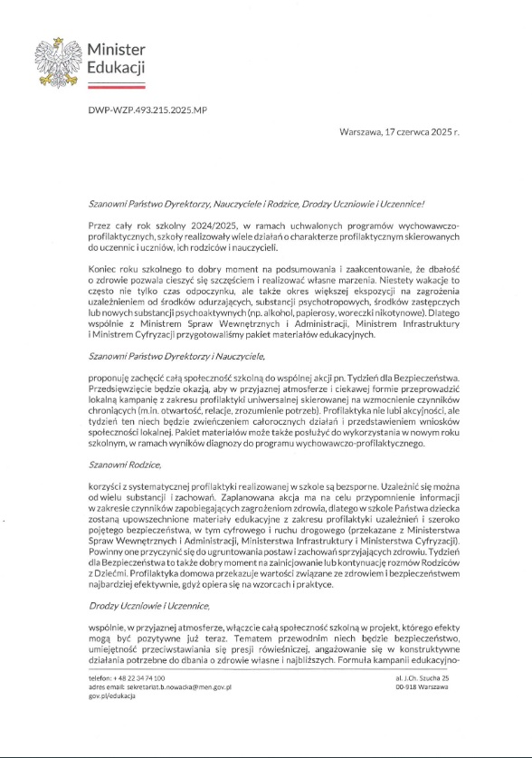 List Ministra Edukacji Załączniki MEN1 [137.55 kB] MEN2 [42.39 kB] Zobacz również Rocznica pacyfikacji Policzny ZAKOŃCZENIE ROKU SZKOLNEGO 2024/2025 TYDZIEŃ DLA BEZPIECZEŃSTWA List Ministra Edukacji DNI OTWARTE W PRZEDSZKOLU „BIBLIOTEKA DOBRE MIEJSCE DLA CZŁOWIEKA” 23 czerwca 2025 Aktualności Wydrukuj Udostępnij Wyświetlono: 114