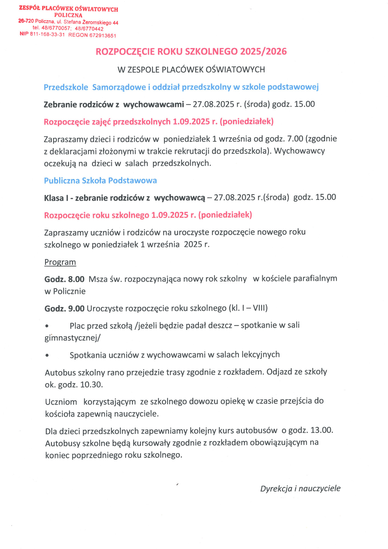 ROZPOCZĘCIE ROKU SZKOLNEGO 2025/2026 W ZESPOLE PLACÓWEK OŚWIATOWYCH POLICZNA Zdjęcia Zobacz również WYPRAWKA DLA PRZEDSZKOLAKA WYPRAWKA DLA ODDZIAŁU PRZEDSZKOLNEGO -0 WYPRAWKA UCZNIA KLASY I ROZPOCZĘCIE ROKU SZKOLNEGO 2025/2026 W ZESPOLE... DOWOZY OD 1 WRZEŚNIA ZAWADA- PATKÓW DOWOZY OD 1 WRZEŚNIA ANTONIÓWKA-WILCZOWOLA 27 sierpnia 2025 Aktualności Wydrukuj Udostępnij Wyświetlono: 243